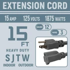 Outdoor Extension Cord - 12/3 SJTW Heavy Duty Grey Extension Cable with 3 Prong Grounded Plug - Power Cord for Lawn, Garden, Appliances Description and features 【Heavy Duty Extension Cord】- 15 amps, 125 volts, 1875 watts, 5-15P/R, 12 gauge heavy duty cord with pure copper wire. 【Indoor/Outdoor Power Cord】- Temperature Range: -40°F to +140°F, flexible vinyl jacket protects cords against moisture, abrasion and direct sunlight. 【Safe Cable】- UL Listed, 3 prong grounded plug for added safety. Reinforced blades protect prongs from bending or breaking. Remain flexible and tangle-free under all weather conditions and wouldn’t become stiff or crack in cold weather. 【Wide Usage】 - Perfectly for your household appliances, generator, HEV, DIY electric tools, lawn mower, pressure washer, pressure washer, Christmas and Spooky Halloween light system. 【Satisfaction Guaranteed】- We stands for the highest quality worry-free product and customer satisfaction. If you are not satisfied with our product in any way, we offer an easy return policy. Return Policy ⦿ All our products come with a 30-Day Return Policy. If you would like to return your item and you are within 30 days of the purchase, and it is still in its original condition, you can return the item by contacting us through eBay messaging. ⦿ If you are not 100% satisfied, please let us know the Detailed Problem,We will give you a 100% satisfactory solution ⦿ If you received an incorrect, damaged, defective, or item not as described, contact us for a partial/full refund or replacement on our cost. ⦿ Free Shipping and Free Return 30-Days Money Back Guarantee. ☎ For all returned products, buyers MUST contact us for the returning address. Shipping ⦿ We do not ship to a different address. we will ship to the address you provide on the ebay only. Please check your address before purchase. ⦿ It should take 2-4 business days for the product to reach your destination. ⦿ If the product doesn't reach your destination within the time limit, please give it an additional 1-2 business days in case of postal delays and/or possible technical issues. ⦿ We use a selection of shipping services such as UPS, FedEx, USPS etc. ⦿ We ship only to the 48 contiguous states of America. We do not ship to Hawaii, Alaska, US Protectorates, APO/FPO addresses. Local pickups are not offered. ☎ If it takes any longer than that, please do not hesitate to contact us to resolve the issues. Contact us ☎ Please contact us via eBay message. And your message will be replied within 1 business days. For any queries, please feel free to contact us, we will get back to you as quickly as possible. Customer 100% satisfaction is our first priority and goal. We are always working hard for maintain high standards of excellence and resolve your problem in best way. So your POSITIVE FEEDBACK is very important. If you have any problem of the item, please feel free to let us know before leaving your feedback. We will try our best to solve your problem. About us We are here to give you quality products, competitive pricing and amazing service in order to make sure you get the best deal online, Thank you for your business and the opportunity to serve you.
