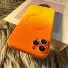 Ownest Compatible for iPhone 11 Pro Max Case with Magnetic Fitting for Magsafe Case Luxury Cute Soft Liquid Silicone Shockproof Full Camera Protector Cover Phone Case-Orange