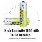 Product Features: PKCELL genuine for sale No memory effect Nickel-hydrogen environmentally friendly material, no pollution 100% brand new, high quality and competitive price Recycling above 500 times Rechargeable battery with good performance 30% more power reserve than Ni-Cd batteries Longer service life than Ni-Cd batteries Wide range of operating temperatures(-20°C~+55°C) Can be used for Solar Garden Lights,solar lights,garden lights,digital camera,portable video,game,flashlight,remote control,toy etc. NIMH battery models are fixed, and there is no worries about using a NIMH battery in the future when no spare battery can be purchased. Product Specification Brand: PKCELL Model: AAA NiMH Rechargeable Batteries Material: Nickel Metal Hydride Voltage: 1.2V Capacity: 1000mAh Dimension(max): Diameter:10.5mm*Height:44.5mm Standard Charge Current: 100mA Time:15H Rapid Charge Current: 344mA Time:4H Application: Digital camera,portable video,game,flashlight,remote control,toy,MP3/MP4 player,electric razor etc. Note: -Standard Charging:These rechargeable NiMH batteries can be charged via NiMH or universal charger. -Charge before using them to make them work longer. Package included: 2pcs 1000mAh AAA NiMH Rechargeable Batteries