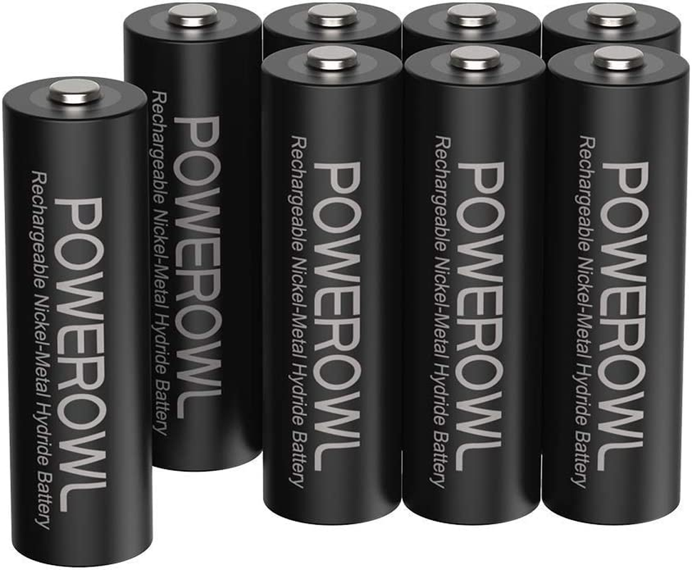 POWEROWL AA Batteries Rechargeable Kit, High Capacity 2800mAh 1200 Cycles 1.2V NiMH Double A Battery, Silver - 8 Count High capacity: POWEROWL capacity of AA rechargeable batteries reaches 2800 mAh and up to 1200 times the charge and discharge cycles Safety: POWEROWL 2800 AA rechargeable batteries Built-in sealing structure, nickel plating steel shell can protect the battery from explosion from overpressure. Avoid accidents such as family fires MORE DURABILITY: Rechargeable AA batteries will always retain 80% of the original capacity, it is highly recommended to be fully charged every 6 months and better to fully charge each battery before first use. Compatible with: These AA batteries are compatible with household appliances, such as digital camera, toy, remote control, handheld game, PDA, flashlight, alarm clock, LCD TV, toothbrush, shaver and portable audio player. Environmental protection: No pollution to the environment benefits from Ni-MH cell. A form of green energy. Powerowl 8 Pieces Rechargeable AA Batteries 2800mAh 1.2V Lr6 Nimh Rechargeable Battery 1200 Cycles High Capacity Battery