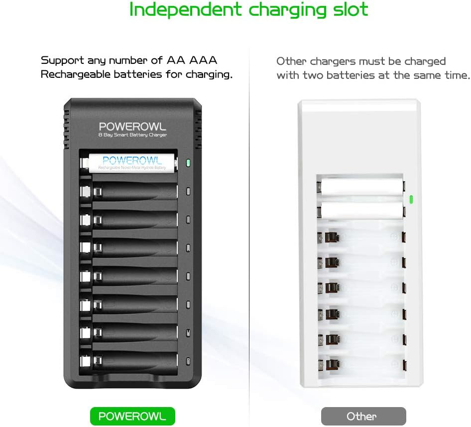 Fast Shipping Great Customer Support Satisfaction Guaranteed DESCRIPTION Shipping Shipping Shipping All domestic packages are shipped for Free (Unless other shipping method was selected during the checkout) We ship within two business days of payment, usually sooner Standard FREE shipping takes between 3-5 business days Expedited shipping takes between 2-3 business days Overnight shipping takes between 1-2 business days We do not accept P.O. BOXES - PLEASE PROVIDE A PHYSICAL ADDRESS We Ship Globally using ebay's GSP, the item is sent to a logistic center in KY and shipped from there to the rest of the world. International customers are responsible for all duties and taxes Contact your local authority for questions related to the amount of duties or taxes you will be responsible for Return Return Return In the event that you would like to return your purchase, we allow returns that are processed within the defined return date (the return date is to be found in the return policy/shipping and handling section) Please contact us for a return authorization and the return shipping address. Please contact us for a Return Merchandise Authorization (RMA) number. We advise you to use a reputable carrier service when returning your goods. Please pack all returns appropriately. We ship globally Via eBay's global shipping program (GSP). Thus we don't cover returns for items shipped globally. Buyers returning such items will be refunded ONLY for the item's cost and not for the shipping. please check the Voltage information and make sure it matches the one in your country. In case it's not stated in the description, do ask us. Payment Payment Payment PayPal is our preferred method of payments it's the quickest, easiest and most secure way to pay for your goods or services online. PayPal offers buyer and seller protection should there be a problem. If you do not have a PayPal account, to get started and buy your first item with us is very easy. Simply click on the 'Buy It Now' button and follow the eBay checkout steps. Select PayPal as the payment method you then will be given the chance to enter your card details in to PayPal's secure checkout in order to pay for your order. Once the payment has been made, you will then be given the opportunity to make your own PayPal account to make paying for your items in the future very easy. Should there be a problem with payment please do let us know. Feedback Feedback Feedback Customer satisfaction is very important to us. If you have any problem with your order,please contact us and we will do our best to make you satisfied, please do not leave a negative feedback before we resolve your problem. We guarantee that your issue will be solved quickly. As long as you are happy with your purchase of , please leave us a positive feedback. Your feedback is very important to us it affects our search placement on eBay. We will leave a positive feedback for you in return automatically once we receive your feedback. Contact Us Contact Us Contact Us If you have any queries, please contact us via ebay. We usually respond within 24 hours on weekdays. Thank you for visiting our ebay store! Pack of 4 AA 2800mAh and pack of 4 AAA 1000mAh 1.2V Ni-MH rechargeable batteries come with a 8 bay smart charger POWEROWL smart charger passed US safety certification comes with chip control, when the battery is fully charged, it will automatically stop charging, and with LED indicator Independent Charging Slot: charge any number of AA AAA rechargeable batteries to make your charging easier. AA AAA batteries charger uses trickle charge to extend battery life and charge up to 99% POWEROWL batteries can be recharged up to 1200 times when fully or partially drained. Green and environmentally friendly, does not contain any harmful substances Batteries work well with a variety of electronics which can be used under 1.5V, including high-power devices such as digital cameras, electric toothbrushes, and flashlights POWEROWL Rechargeable AA and AAA Batteries with Fast Charger, High Capacity NiMH Click here to see description Fast Shipping Great Customer Support Satisfaction Guaranteed DESCRIPTION Shipping All domestic packages are shipped for Free (Unless other shipping method was selected during the checkout) We ship within two business days of payment, usually sooner Standard FREE shipping takes between 3-5 business days Expedited shipping takes between 2-3 business days Overnight shipping takes between 1-2 business days We do not accept P.O. BOXES - PLEASE PROVIDE A PHYSICAL ADDRESS We Ship Globally using ebay's GSP, the item is sent to a logistic center in KY and shipped from there to the rest of the world. International customers are responsible for all duties and taxes Contact your local authority for questions related to the amount of duties or taxes you will be responsible for Return In the event that you would like to return your purchase, we allow returns that are processed within the defined return date (the return date is to be found in the return policy/shipping and handling section) Please contact us for a return authorization and the return shipping address. Please contact us for a Return Merchandise Authorization (RMA) number. We advise you to use a reputable carrier service when returning your goods. Please pack all returns appropriately. We ship globally Via eBay's global shipping program (GSP). Thus we don't cover returns for items shipped globally. Buyers returning such items will be refunded ONLY for the item's cost and not for the shipping. please check the Voltage information and make sure it matches the one in your country. In case it's not stated in the description, do ask us. Payment PayPal is our preferred method of payments it's the quickest, easiest and most secure way to pay for your goods or services online. PayPal offers buyer and seller protection should there be a problem. If you do not have a PayPal account, to get started and buy your first item with us is very eas