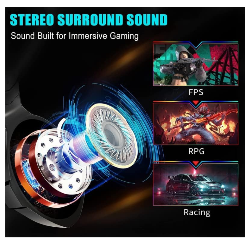 This gaming headset is a total game-changer! The 360-degree surround sound makes every detail crystal clear, and the noise-canceling mic ensures my teammates hear me perfectly. The RGB lighting adds a cool vibe, and the comfortable over-ear design keeps me immersed for hours. Works flawlessly across all my devices—PS4, PC, and even my phone. Definitely worth it for serious gamers!