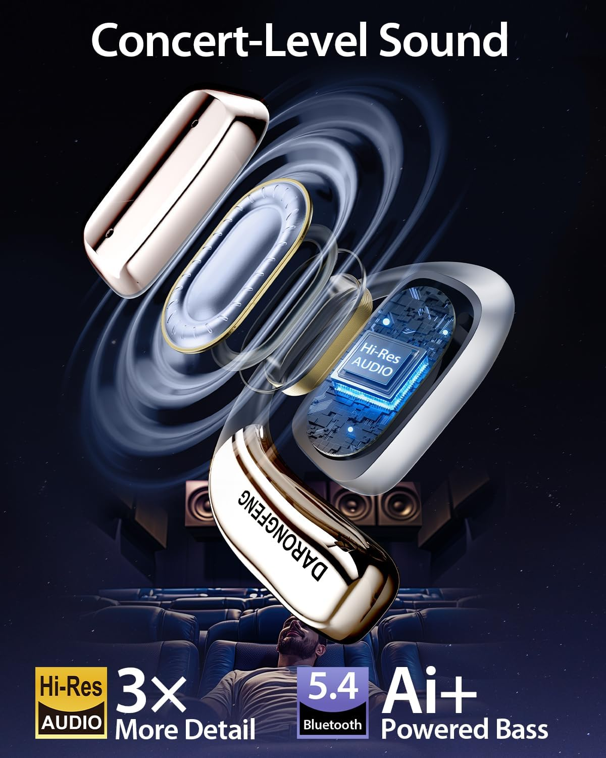 Love these open-ear headphones—so comfortable for long wear, and they stay put during workouts! The sound is crisp, and the LED charging case is a handy bonus. Perfect for running or driving since they don’t block ambient noise. The ear hooks fit snugly without pressure, and the sweat resistance makes them ideal for active use. A fantastic blend of comfort and quality!