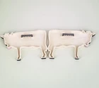 DESCRIPTION: This is a vintage pair of hard plastic black and white dairy cows with pink bows. They have metal hangers for easy wall decor. They are stamped Made in USA. They are very kitsch and are perfect for DIY craft projects. Cute and Country they look perfect for Homesteading or Farmhouse Country Kitchens! LOC/A-5, #3220 COLORWAY: Black, White, and Light Pink. SIZE: Approximately 6" Long and 4" Wide. CONDITION: These two plastic cow wall plaques do not show any cracks or chips. I have not altered the paint or color of the cows and you will see they show some wear and fading which is common in MCM items. I believe they can be touched up by the buyer if they choose to change them. Please see my Photos for Exact Condition Details. Thank you for stopping by my store today and enjoy your evening!