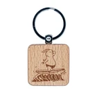 Peaceful Zen Surfer Pig Engraved Wood Square Keychain Tag Charm