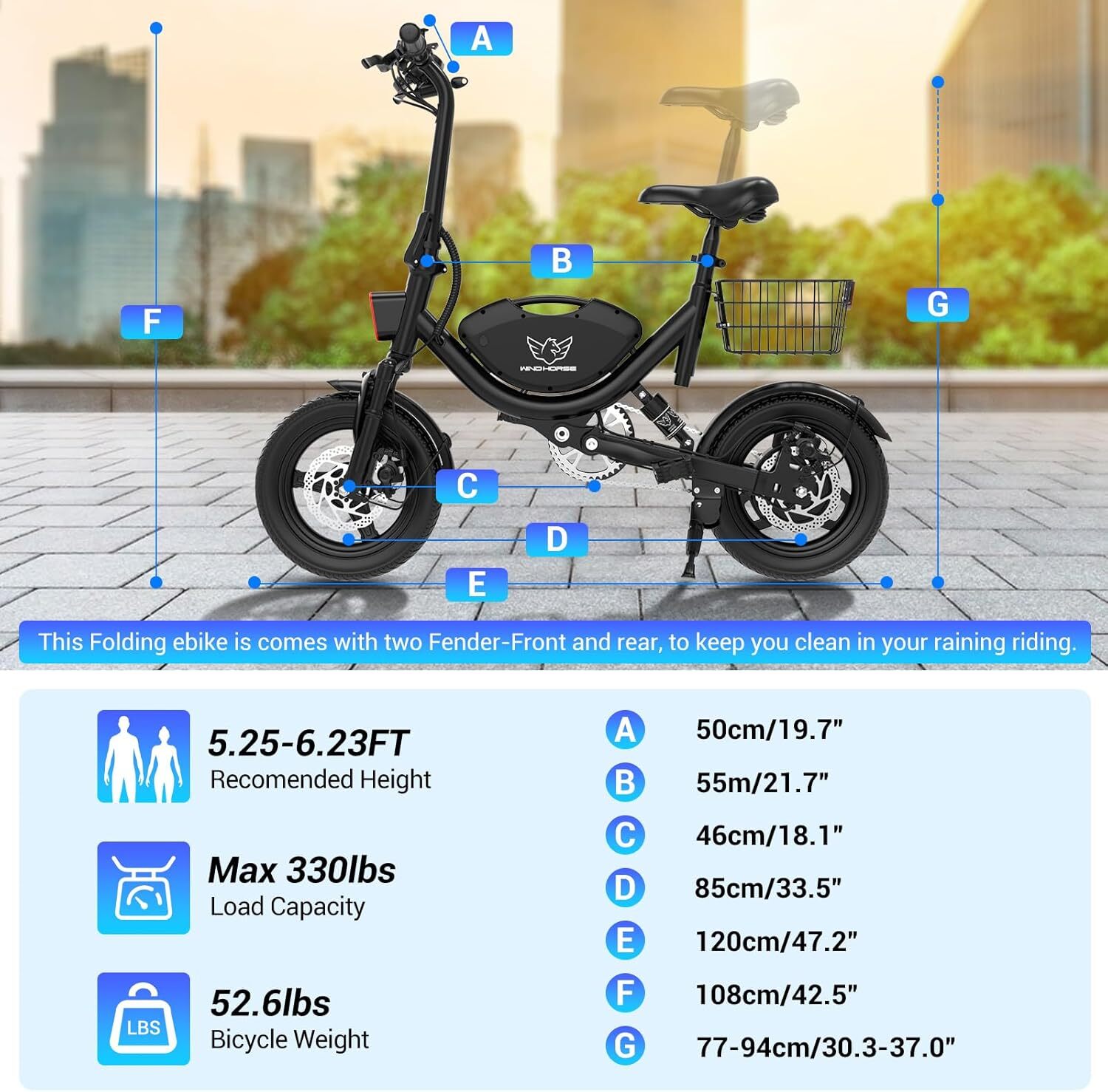 14in Folding Commuter Ebike with Basket 715W 22MPH for Adults