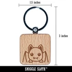 Peeking Bat Halloween Engraved Wood Square Keychain Tag Charm