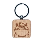 Peeking Monster Engraved Wood Square Keychain Tag Charm