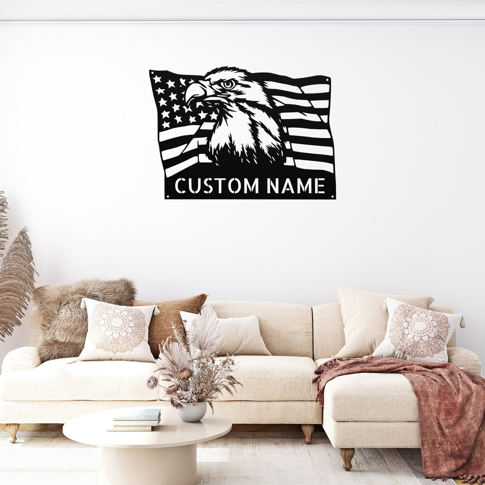 Product Description Introducing the Personalized US Bald Eagle Metal Sign , a stunning tribute to the spirit of freedom and patriotism. This beautifully crafted sign is made from 16 gauge high-quality metal , ensuring durability and strength. The powder coating finish makes it dust, weather, and water-resistant , perfect for both indoor and outdoor display. This sign is a perfect gift for Christmas, birthdays, or any special occasion . Personalize it with a name, date, or special message to create a unique piece that reflects your love for the United States and its majestic symbol, the bald eagle. Whether itβs hung in your home, office, or outdoors, this sign adds a meaningful touch to any space. Key Features: Durable Material : Made from 16 gauge metal for exceptional quality and longevity. Weather Resistant : Coated with a powder finish to protect against dust and moisture. Customizable Design : Personalize with names, dates, or phrases for a unique touch. Versatile Decor : Ideal for homes, offices, patios, or any area needing patriotic flair. Thoughtful Gift Idea : A wonderful choice for veterans, military families, or anyone who loves the USA. This metal sign not only enhances your decor but also serves as a beautiful reminder of the values and freedoms we cherish. Itβs a striking conversation piece that celebrates the American spirit. Order your Personalized US Bald Eagle Metal Sign today to add a special touch to your decor or to give a meaningful gift that will be treasured for years! Service and Color Choice My metal signs are designed to be personalized just for you, making them the perfect addition to any space! The default color is Black , but I also offer a variety of beautiful options including Copper, Gold, White, and Silver . After placing your order, simply contact me with your preferred color choice, and I'll ensure your sign is exactly how you envision it. Letβs create something special together! π How Metal Signs Are Measured Metal signs are measured from the widest point to the opposite widest point of the design. The listed size (8β, 10β, 12β, 18β, 24β, 30β, 36β, etc.) always refers to the longest edge of the artwork, not the height only and not the width only. Because every design has its own shape and proportions, the other dimension (height or width) will adjust automatically . π Example (30-Inch Size) When selecting a 30-inch sign , the longest side of the design will measure 30 inches . If the design is wider than it is tall: Width = 30 inches Height adjusts proportionally (often around 18β22 inches depending on the design) If the design is taller than it is wide: Height = 30 inches Width adjusts proportionally This ensures the sign keeps its correct proportions and the original shape, no matter which size is selected. π¨ Custom Designs & Logos Welcome Have a special idea in mind? I can make it happen! Whether you need a business logo , family emblem , pet silhouette , or a one-of-a-kind design , I can create it from scratch and turn it into a high-quality metal sign. You can send your concept, sketch, or photo, and Iβll handle the custom design, editing, and production from start to finish. Your vision becomes real metal artwork made exactly the way you want it. β¨ Custom Any Design: If you have a special idea in mind, I can turn it into a metal sign, just message me! π¦ Ordering & Gift-Ready Each sign is crafted to order with great care and attention to detail. Your piece arrives ready to hang , making it easy to display or give as a thoughtful gift. Whether it's for your home or for someone special, every sign is made to impress and last for years. π Your support means the world to me and my family. Thank you for helping keep this small art business growing. π Production & Shipping Every sign is made to order with a fast turnaround time. Production Time: 1β2 business days Free Shipping: UPS Ground (estimated 2β5 business days ) Expedited Shipping: FedEx 2-Day Delivery available at checkout Shipping Location: All orders ship from Indiana, USA Each order is packed securely to ensure your metal sign arrives safely and ready to display.