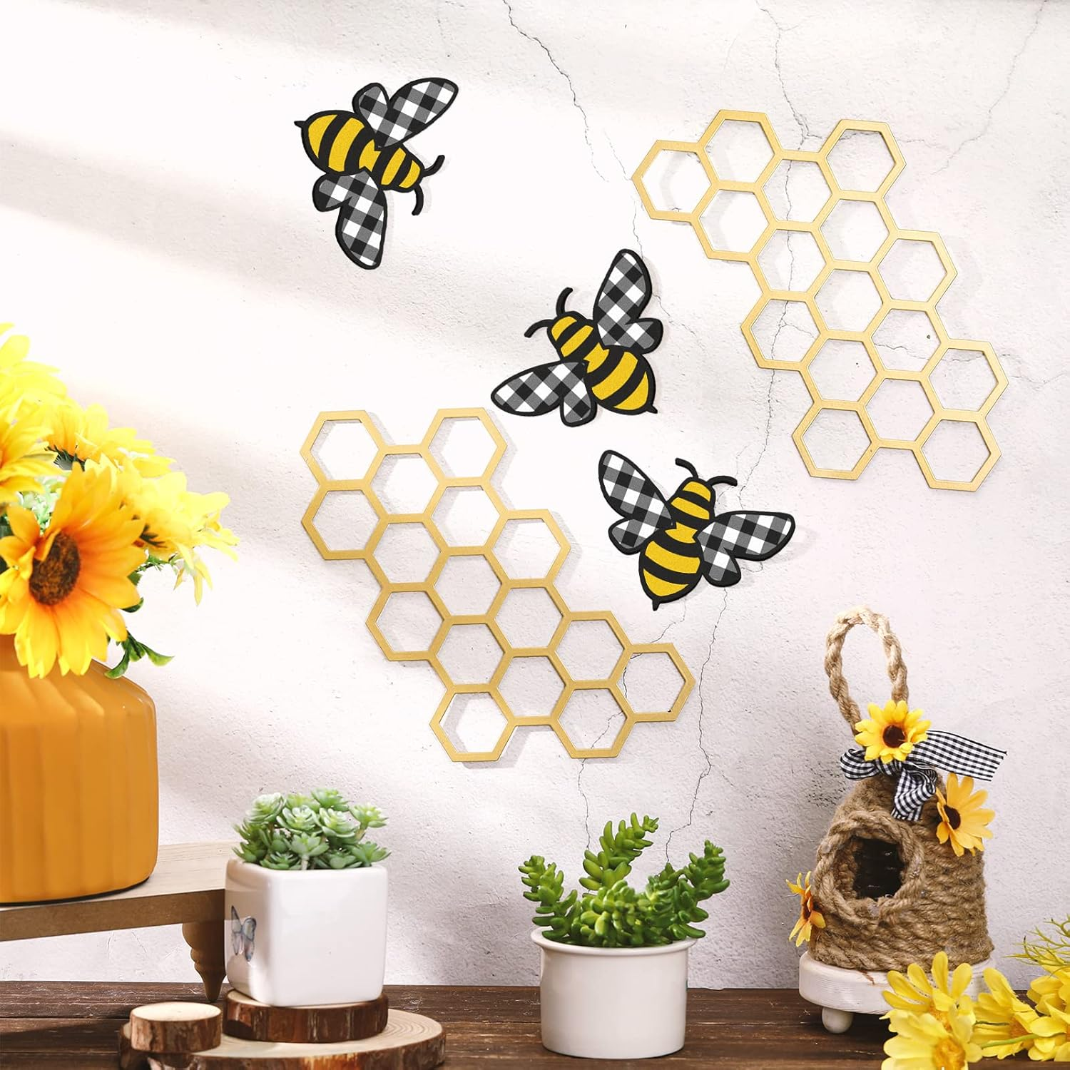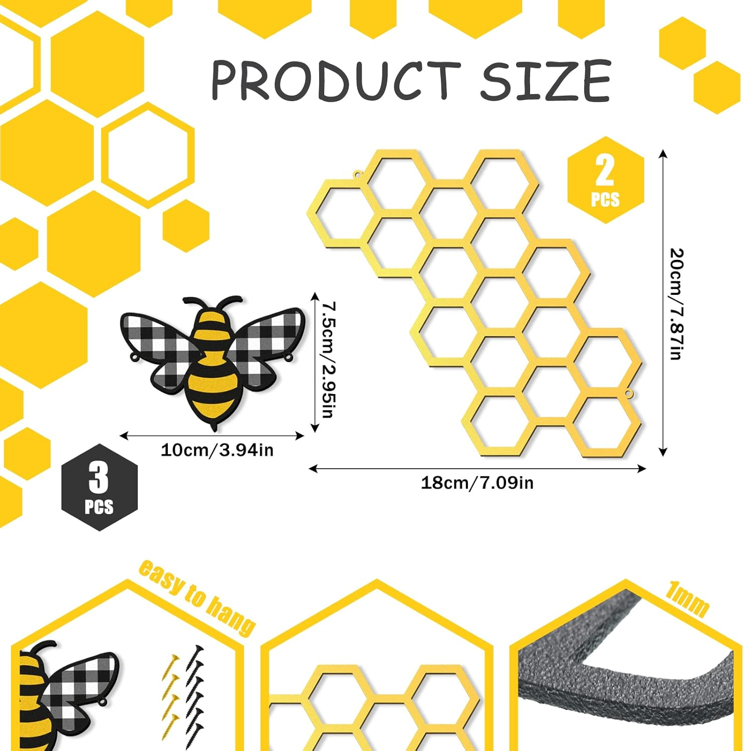 Store New Arrivals Add to Favorite View Feedback Contact Peryiter 5 Pcs Metal Bee Wall Art Farmhouse Honey Bee Honey Comb Decor Wire Metal Wall Decor Hanging for Living Room Garden Bedroom Office Home(Stylish Color) Description Batteries required No Product Dimensions 7.87 x 7.87 x 0.2 inches Item Weight 0.634 ounces Color Stylish Color Finish types Metallic Number of pieces 5 Manufacturer Peryiter What You Can Get: you can get 5 pieces of hanging art ornaments in this package, including 3 pieces of bee shaped decors and 2 pieces of honeycomb shaped decors, cute and eye catching, to keep your room from being dull and monotonous Reliable and Reusable: this honey bee decor is made of metal material, reliable and unbreakable, long lasting and sturdy, not easy to break or fade, smooth to touch, lightweight and thick, providing you with a pleasant use experience, so you can use it with confidence Decorative and Eye Catching: our bee wall decor is mainly printed with a black and gold color, and the bees adopt plaid and stripe elements, so you can hang it in many places, such as windows, mantels, fireplace, doors, counters and more, full of a sense of elegance and color in your home and room Proper Size to Decorate: our bee shaped decors are about 3.94 x 2.95 inches/ 10 x 7.5 cm and these honeycomb shaped decors are about 7.87 x 7.87 inches/ 20 x 20 cm, suitable and portable, you can use this metal outdoor wall art to decorate your space conveniently Variety of Occasions: this bee decor features an attractive color and adorable appearance, suitable to display in different places, like hallway, kitchen, patio, porch, bathroom, bedroom, living room and so on, can well blend with your various ornaments Product description ABOUT US We offer the best prices around on high quality products. Our E-store includes media such as books, movies, music and games while offering electronics, toys, sporting apparel, clothing, tools, general home, garden items and more. SHIPPING We are always working hard to ensure your package arrives as soon as possible. Please understand that some factors like weather, high postal traffic, and the performance of shipping companies are outside of our control. We offer free shipping to the lower 48 states and ship within 2 business days of payment, usually sooner. We do not accept P.O. Boxes. Please provide a physical address. RETURNS We offer a 30-Day Return Policy on items which you are not completely satisfied with. You have the option for a full-refund or an exchange of the item. No returns are available on items shipped outside of the USA. PAYMENT We accept PayPal. CONTACT US This page content is yet to come Please ad us to your favorite seller and visit again later Thank You CUSTOMER SATISFACTION We try our very best to make sure every customer is completely satisfied. If there's a problem, message us! We're happy to help.