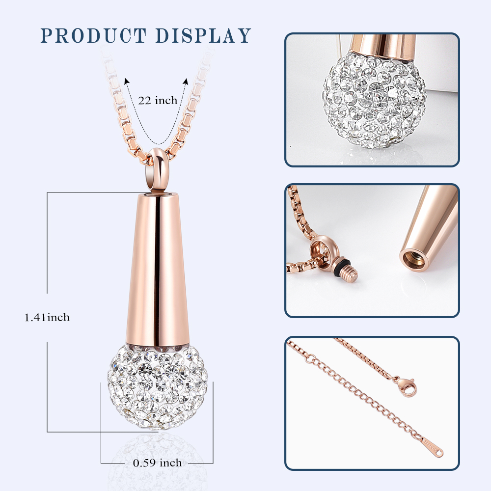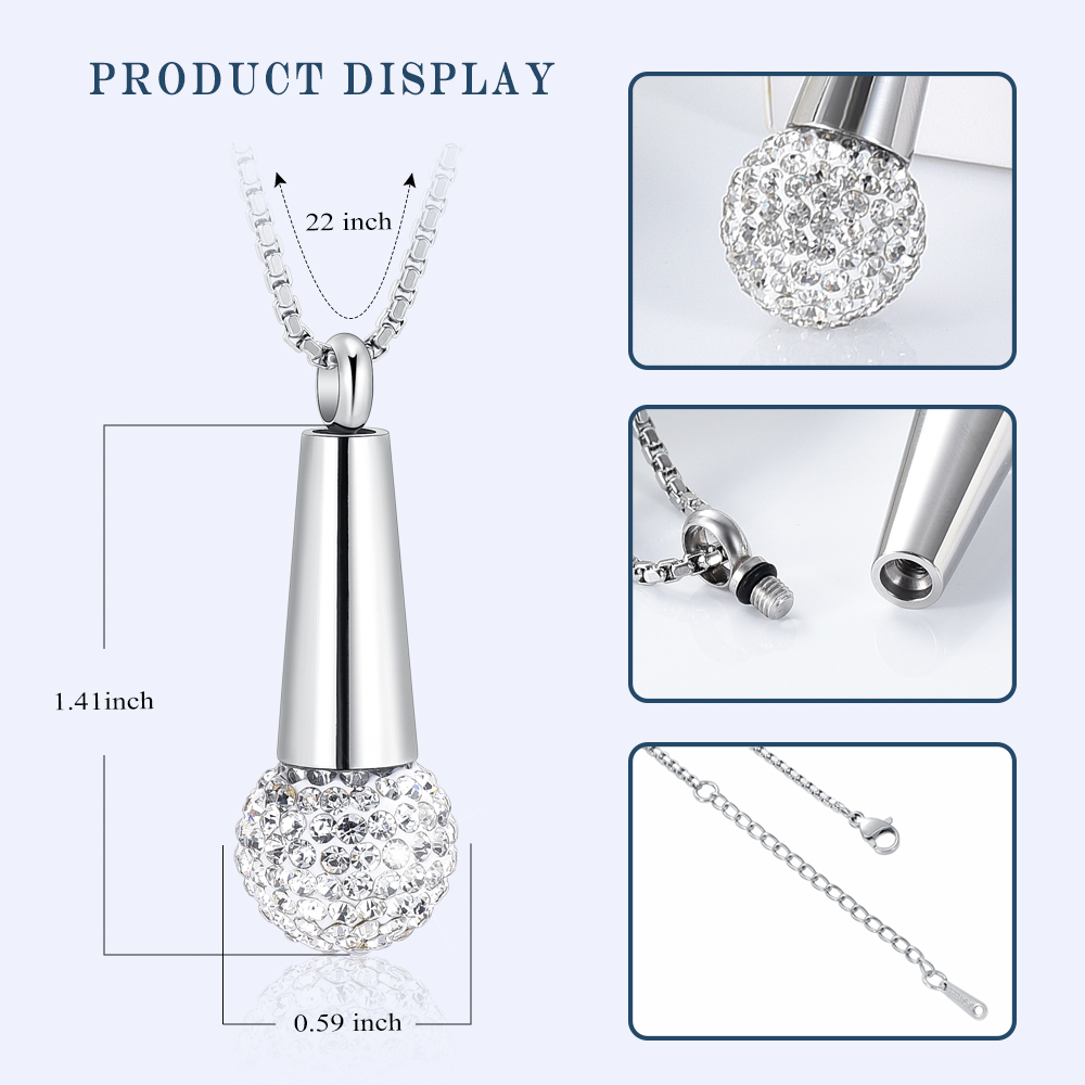 Welcome to My Shop Product Detail: ★Item Type: Cremation Jewelry For Ashes ★Material: 316L Stainless Steel+Crystal ★Train type: snake chain or you want ★Package: Product*1+Funnel*1+Gift Box/Bag*1+User Manual*1(Default packing is gift bag. ★Free Customized Engraving: We can engrave your favorite words or patterns on the back of the necklace. Pls contact us after placing orders if you need engraving. ★How many letters/patterns can be engraved on the necklace? -The less the better. The necklace just has a very small space to engrave words or patterns. Pls contact us for confirmation if you need engraving. Package: Product*1 Funnel*1 Gift Box/Bag*1 User Manual*1(Default packing is gift bag.) How to Customize ? ①We provide the free engraving service, you can leave a message after the order to tell us what you want to engrave, we will engrave according to your requirements ②It can be engraved with name, message, date etc. When you wear it as a reminder that your loved one always in your heart, have never been apart. ③Please carefully check the content to be engraved before placing an order Engraving attention: 1) You can engrave simple text on the pendant, such as name/ date/ blessing/ love heart pattern to showcase your unique personality. 2) The more characters you have in the content, the smaller the overall text. The best character range is 5-10 letters or numbers. 3) For those who cannot engrave on the pendant body, we provide engraved small tags, If not engraved, the package does not include small hangtag. 4) If you do not leave a message and place an order for "Customized Engraving", the default product will be sent. Default packing is gift bag Ashes filling procedure 1.Use a small screwdriver to unscrew the pendant. 2.Use the funnel tool to fill the pendant with ashes. 3.Poke the ashes in the funnel with a steel needle to make the ashes enter the pendant.