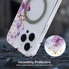 Introducing a phone case compatible with Apple iPhone 14 Pro, featuring a magnetic charging system and a clear design with a beautiful butterfly pattern. The polycarbonate material ensures protection against scratches, while the wireless charging feature adds convenience to your daily routine. This charger case comes in a multicolor floral finish, making it a stylish addition to your phone accessories collection. It is suitable for use with any Apple device and is an ideal choice for those who want to upgrade their phone's protection and charging capabilities.