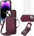 Phone Case for iPhone 15 6.1 inch Wallet Cover with Screen Protector and Mirror Credit Card Holder Crossbody Strap Long Lanyard Leather Cell iPhone15 5G i i-Phone i15 15Case Women Girls Red ?Compatible Models?: Compatible with iPhone 15 (6.1 inch), NOT compatible with other devices.