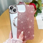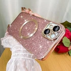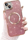 Phone Case for iPhone 15 Plus Magnetic Glitter Case, [Compatible with MagSafe] Luxury Plating Cute Bling Sparkly Clear Slim Shockproof Phone Cover for Women Girls - Pink