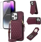 Phone Case for iPhone 15 Pro Max 6.7 inch Wallet Cover with Screen Protector and Mirror Card Holder Crossbody Strap Cell iPhone15promax 5G i Phone15Max Plus iPhone15 ProMax Women Girls Red ?Compatible Models?: Compatible with iPhone 15 Plus (6.7 inch), NOT compatible with other devices.