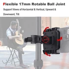Phone Holder for Microphone Stand/Selfie Stick/Tripods/Boat Railing, Adjustable Mic Stand Holder for iPhones All Smartphones, Fits for 11mm-17mm Tubes (Very Small Clamp) Product Details Brand: Rigdance Compatible Devices: Smartphones Compatible Phone Models: all phones Mounting Type: Tripod Special Feature: Hand Free Package Dimensions: 5.59 x 3.9 x 2.99 inches Item Weight: 4.6 ounces Item model number: 1091 Special features: Hand Free Manufacturer: Rigdance Date First Available: March 26, 2024 VersatileSpecially designed for Insta 360 selfie sticks. Converts your phone as a monitor for your insta 360 cameras, helps you produce high quality videos. The selfie stick phone holder compatible with any pole with a diameter of 0.43-0.67 inches. Also fits for music stand, drums stands, light stands, boom, speaker stand, light stand or tripod stand. Great phone holder for insta 360 action camera users, microphone stand for singers, drummers and guitar players Easy to Get the Phone On and OffOne hand and one second set the phone on/off by the magnets. Unlike the traditional phone clip which needs doubble hands to pull it hard to do so FlexibleThe back of the phone holder is a 17mm rotable ball, which is flexible to any viewing angle, such as horizontal, vertical, upward and downward or tilt Portable and ConvenientLightweight and easy to carry; Free your hands while singing/recording/film content Secure and StableO-Style Buckle double Lock to mic stand, providing strong and tight clamp force, will not slip on the rod Rigdance Phone Holder for Insta360 Invisible Selfie Sticks, Microphone Stand/Tripods/Boat Railing, Fits for 11mm-17mm Tubes (Small Clamp) This Phone Holder Mic Stand Clamp Mount is made of strong ABS and metal, lightweight but durable, providing strong clamp force and making your phone sturdier and safer, not slip down when you touch or use the Phone Holder Mount for Mic Stand/Selfie Sticks. Specially designed for Insta 360 selfie sticks. Converts your phone as a monitor for your insta 360 cameras, helps you produce high quality videos. Features: 1. Versatile-fit for Insta360 invisible selfie sticks, microphone stand, music stand, drums stands, light stands, etc. 2. ABS, Metal, Aluminum Alloy material,durable and not easy damage 3. 360 degree different angles adjustable 4. Easy to Get the Phone On and Off and no any tools required 5. Secure and Stable, O-Style Buckle double Lock to mic stand Package Includes: 1 x phone holder 1 x rod clamp