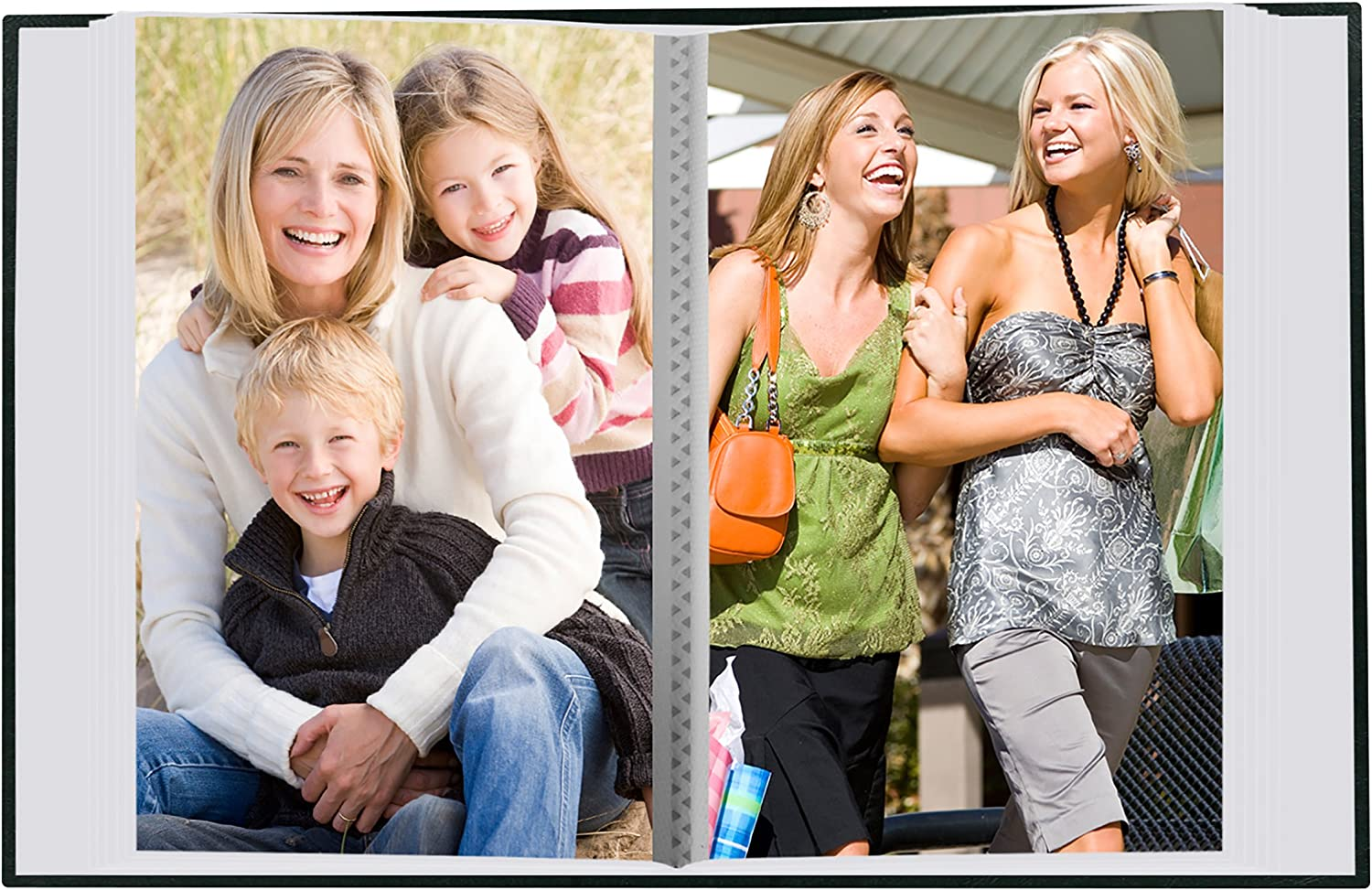 CAPACITY: 100 PHOTOS 1 PHOTO PER PAGE The perfect gift This photo album features a leatherette cover with gold stamping and book style binding. It holds 100 photos up to 4 x 6 inches in clear pockets with a white Mesh background. Photos are displayed one per page. Archival, photo safe: acid, lignin and PVC free.
