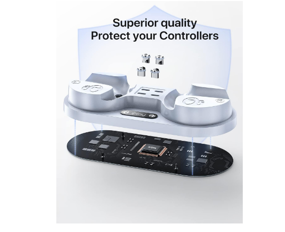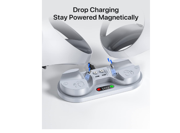 Intoval Charging Station for Playstation VR2 Sense Controllers, PS VR2 Sense Controller Charging Station. About this item [Charge Two Controllers] - Charge up to two PlayStation VR2 Sense Controllers at the same without having to use two separate cords and adapters. Save more space. [Same Charging Speed] - Your controllers charge as fast as when connected directly to your PS5 console. One station charges two without sacrificing any performance. [Easier Charging Attach] - Once you insert the magnet connector, charging has never become easier: put the controllers, then charging begins! No more plug ins and outs. [Protect Your Controllers] - The station detects charging current in real time and auto disconnects charging if anything unusual happens. Your controllers will always be safe. Brand Intoval Connectivity Technology USB Connector Type 2-Pin Compatible Devices Game Consoles Special Feature Magnetic Input Voltage 5.28 Volts Mounting Type Tabletop Mount Total USB Ports 1 Power Source Corded Electric Item Weight 5.9 Ounces