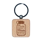 Please Remember to Drink Water Bottle Engraved Wood Square Keychain Tag Charm