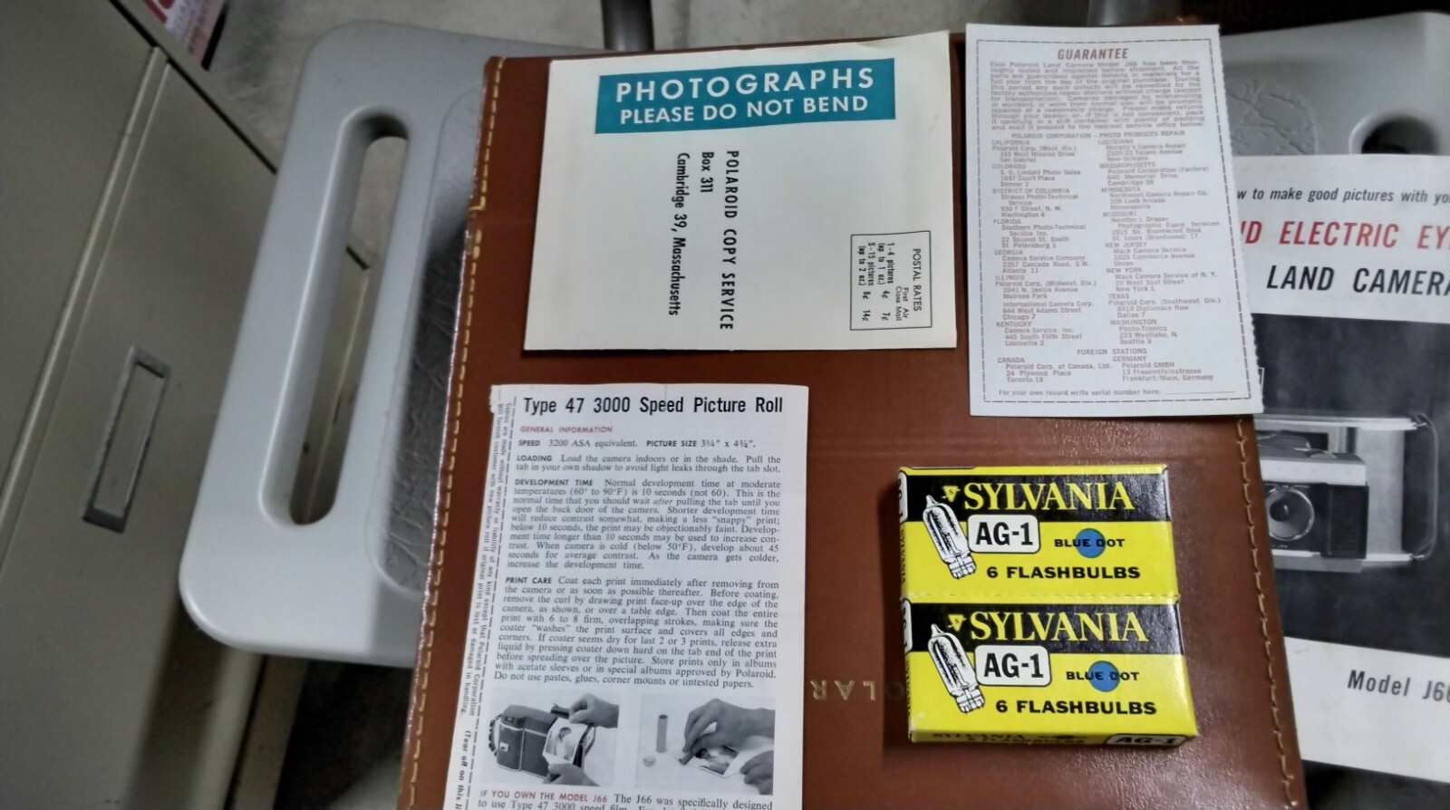 The Polaroid Electric Eye Land Camera Model J66 in gray color is a vintage instant camera by Polaroid. It comes with its original leather case. This vintage camera combines classic design with modern functionality, capturing instant photos with ease. This is exactly the way I found it, don't know to much about the camera except that it was located in my grandpa's basement. I can't guarantee if it works or not and I haven't had it checked out, it looks in very clean shape and undamaged.
