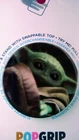 {Loc: BR Shelf 4 SB-5, AK-514} Hold your phone with ease using Baby Yoda Pop Socket. This round pop socket offers a black background with a depiction of Baby Yoda, aka Grogu, printed in the center. Secure it to the back of your phone to take better photos, text with one hand, and watch videos hands free! Dimensions: Diameter: 1 1/2" Thickness: 3/8"