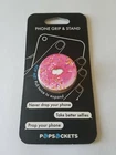 A PopSockets grip is more than a stylish phone accessory. It’s an opposable thumb for your phone. It lets you take selfies like a pro and share with your circle of fans, friends or embarrassing family members. It lets you text things you may or may not later regret with the greatest of ease. It lets you stand your phone up on an airplane tray table to watch a movie. When you’re done, it collapses flat like your bangs in a rainstorm. PopSockets grips are repositionable and stick to most devices and cases but may not stick to silicone or waterproof materials. The product includes a special 3M adhesive disc for attaching your grip directly to a glass-backed phone. You may also buy a separate “mount” to attach your phone to your dashboard, mirror, refrigerator, air conditioning vent or wherever you snack on content. Mmm…content. And now, a little something for all you specification geeks: Diameter: 1.56 inches, Height: .9 inches when expanded, .25 inches when collapsed.