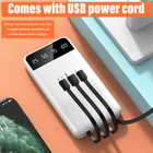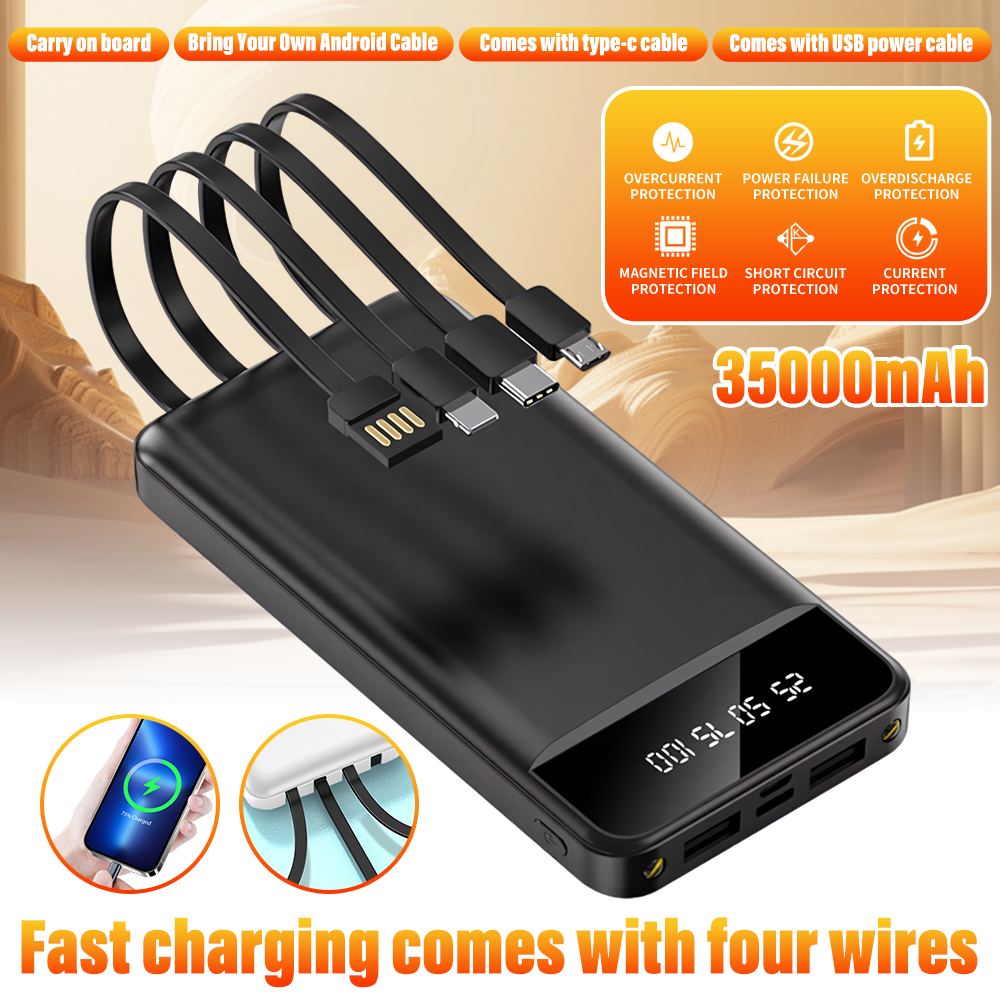 Feature : Wide Compatibility Mobile Power with Built-in Cables: N6 USB C Portable Charger has 4 built-in cables (iOS, Type C, USB A, Micro) and 3 charging ports (USB A 1/2, Type C), which are compatible with almost all types of smart devices on the market, such as iPhone 16 15 14 13 12 11 series, XR, XS Max, Samsung S22, S21, S20, A52, A32, Z fold series, Z flip series and Google Pixel series as well as other Android phones, iPads, tablets and more... All-in-One Portable Charger: Portable mobile power with 6 outputs and 2 inputs, you can charge up to 6 devices at the same time and easily charge battery packs with 2 options (USB A cable, USB C port), perfect for multi-electronic device users. Upgrade the USB C port to use as input and output, perfect for your new iPhone, iPad and all upcoming USB C devices. No more carrying cables on the road, and say goodbye to the hassle of messy charging cables! 35,000mAh capacity and ultra-compact design: Does a high-capacity charger have to be big and heavy? No, the N6 is a big deal! With the new high-density polymer battery, you get more capacity in the same size. Our 35000mAh portable battery measures 151*73*20mm (5.95*2.87*0.79 inches) and weighs 335g (11.8 ounces), which is close to the size of an iPhone 15. The ultra-compact and portable design allows you to easily slip it into a backpack, handbag or pocket. Perfect for those who need a fast, reliable charge on the go. 3X FASTER 22.5W PD QUICK CHARGE OUTPUT: The N6 Portable Battery supports 22.5W PD Quick Charge, which allows your iPhone 15 to be fully charged to 50% in 30 minutes, which is nearly 3X faster than other traditional chargers, dramatically reducing your charging time. The simple and elegant LED digital screen displays the battery level even down to 1%. Provide you with stable and reliable charging service anytime, anywhere, never worry about your phone running out of power again! SAFE AND RELIABLE BATTERY PACK: SABANI portable battery has 10 layers of multi-system protection, built-in low-temperature IC ice core, intelligently monitors the voltage and current, and actively avoids a series of potential dangers such as overcharging, over-discharging, short-circuiting, high temperature and other potential dangers, creating a safe charging environment for you. Speci fication : Cell Type:Polymer Li-ion cell Material:Plastic Color: white, black Capacity:35000 mAh Size:140*71*17mm Charging power:10W Product Type:Self-wired Function:Support fast charging Conversion rate:75% Pack age list: 1 x Power Bank 1 x Usb Cable 1 x User Manual