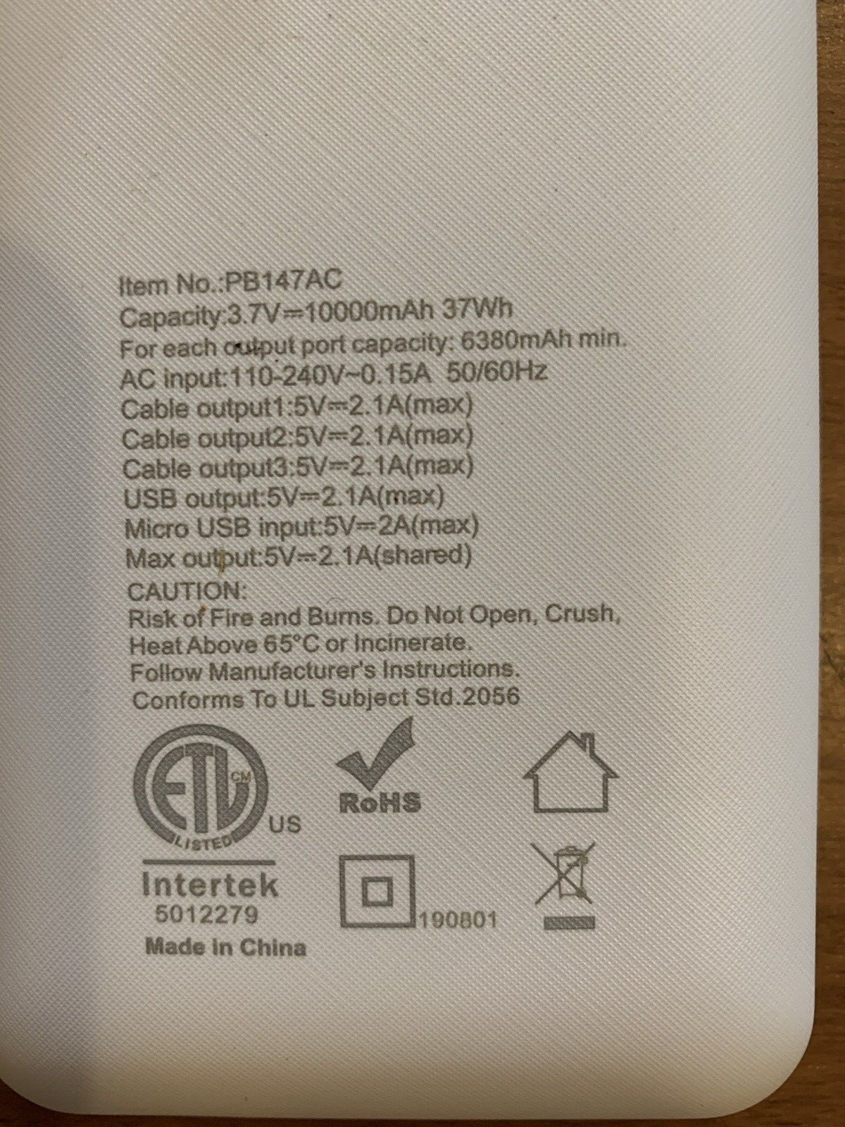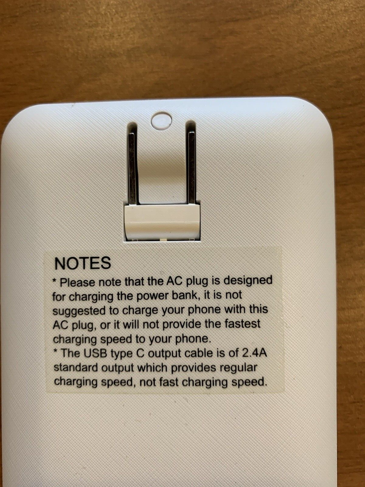 Heloideo ultra slim dual USB ports power bank 10000mah USB C Power Bank ETL Charger With AC wall charger 3 Charging cable 4 output for iPhone #PB147AC with built-in wall plug C3 Heloideo 10000mah Ultra Slim USB C Power Bank ETL Charger With AC wall charger 3 Charging cable 4 output portable charger for iPhone for all mobile phones #PB147AC [ALL IN ONE Power bank external battery pack]: Built-in wall plug (110~240V) for charging from any power outlet. built-in lightning cable for charging iPhone and iPad, built-in micro USB cable for Android devices , built-in USB type C cable for charging Galaxy S8 and more. everything you need, this Portable power charger both have can meet your needs or your family. You do not need charging cable or AC adapter anymore. [MASSIVE 10000mAh POWER CAPACITY]: With 10000mAh battery capacity you can charge an iPhone 7 Plus & iPhone 6 Plus about 3-4 times etc. [SLIM AND COMPACT SIZE]: HELOIDEO External battery pack only 16mm, ultra-thin design, and lightweight, which make it easier to carry, built-in AC plug and cable in iPhone battery pack are collapsible, will not give you too much trouble when carrying out. [UNIVERSAL COMPATIBILITY]: Universal compatibility with Apple: iPhone 7, iPhone 7 Plus,iPhone 8, iPhone X, iPad. Compatible with Bluetooth speakers/headphones, Samsung, HTC, LG and so on, almost any mobile devices can be charged with built-in cables. TO CHARGE YOUR ELECTRONIC DEVICE Option 1 Your electronic device will be charged by power bank automatically once connected with the built-in cable. If not, please press the power button to turn on the wireless power bank Option 2 Connect the USB port to your electronic device with charging cable that comes with your electronic device, then power bank will start charging, if not, please press the power button to turn on the power bank Option 3 if your mobile devices support wireless charging, you can put the mobile phone on the wireless area, Turn on the power bank, lay the wireless charging supported smartphone on the wireless charging zone of wireless Power bank, the mobile phone will be wirelessly charged, if charging doesn't work, please adjust the position of the mobile phone. TO CHARGE POWER BANK Option 1 Using the built-in AC plug Plug the built-in AC plug of the power bank into the AC outlet. The LED lights will illuminate and indicate battery level in the power bank. When all 4 LED lights are on and solid/none are flashing, the power bank is fully charged.(It will take about 8 hours to fully charged the power bank from AC outlet) Option 2 Using Micro USB charging cable(Not included) Connect power bank to a USB AC adaptor or the USB port of a computer with a micro USB charging cable(Not included). The LED lights will illuminate and indicate what battery level is in the power bank. When all the LED lights are on and solid/none are flashing,the power bank is fully charged. CHECK THE BATTERY POWER LEVEL Make a quick press and release on the power button, the LED indicators will light up for a few seconds then turn off automatically, each LED light represents approx twenty-five percent power of a full battery. NOTE If you find it can not charge your phone, please press the button Advantage: Heloideo fast charger can be used not only as a ac charger, but also as power bank; 1. Easy to carry out, portable, light 2. Auto power-on once connected, auto identification, auto adjusting current 3.Protection from over-charge, over-discharge, over-current, leakage, short circuit