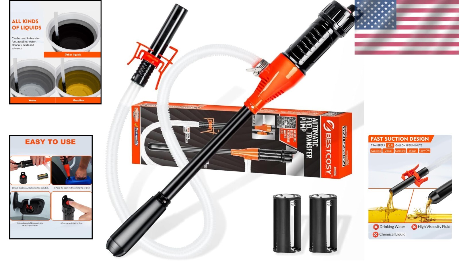 Battery-Powered Siphon Pump for Easy Liquid Transfer - Ideal for Outdoor Use ‹ › ‹ › ‹ › ‹ › ‹ › ‹ › ‹ › ‹ › ‹ › Battery-Powered Siphon Pump for Easy Liquid Transfer Ideal for Outdoor Use Features: Portable Electric Pump: Designed for on-the-go fuel transfer, this gas siphon pump is an essential tool for DIY mechanics and outdoor enthusiasts alike. Battery Powered: Features a battery-operated design, perfect for outdoor activities or emergency situations. Requires 2 D Cell batteries or 6 AA batteries (not included). Powerful Suction Performance: With a 1/2 inch discharge tube, 24 inches long, the impeller boosts suction power, enabling effortless liquid transfers. Capable of pumping 2.4 gallons per minute and over 1000 gallons on a single set of batteries. Versatile Use: Ideal for transferring water, gas, light oil, kerosene, diesel, and more. The suction tube length of 16 inches fits 3 to 5-gallon gas cans, jerrycans, pail buckets, and more (note: corrosive liquids cannot be transported). Quality Guarantee: Crafted from high-quality, non-toxic, and tasteless materials, our electric water pump is easy to use, corrosion-resistant, and durable. Benefits: Effortless liquid transfer for greater efficiency. Battery-operated for flexibility in remote locations. Robust construction ensures longevity. Compatible with various types of liquids, offering versatile usage. Designed with user satisfaction in mind, supported by our customer service team. Why choose our Battery-Powered Siphon Pump? Are you ready to revolutionize your liquid transfer experience? Our Battery-Powered Siphon Pump is the ultimate solution for those in need of a portable and powerful liquid transferring tool. Whether you're prepping for an outdoor adventure, managing a project, or addressing an emergency, this pump delivers reliability and efficiency at your fingertips. Don’t let inaccessible power sources limit your tasks – order your Battery-Powered Siphon Pump today and embrace the freedom of effortless liquid transfer! Shipping Free & Fast Shipping - We offer free shipping to most of the USA with a normal delivery time of 3-7 days. However, due to the current situation, additional delivery time (up to 3 weeks) may be required for some items. Alternative Carriers - We may use alternative carriers (e.g. USPS, FedEx, UPS, etc.) to ensure your package arrives safely and on time. Due to the use of multiple carriers, we are unable to provide a tracking number automatically. Handling Time - Orders are processed and shipped within 1-2 business days of receiving cleared payment. Shipping Restrictions - Shipping to Alaska, Hawaii, Puerto Rico, Guam, and other US territories may incur shipping charges or delivery restrictions. Please contact us before ordering, or your order can be refunded/cancelled. State Restrictions - There may be restrictions based on your state of purchase. For example, certain items may not be shipped to California due to state regulations. Contact for Tracking Updates - If you require tracking updates or have any concerns about the delivery of your order, please feel free to contact us, and we will be happy to assist you. Return 30-Day Hassle-Free Returns - We want you to be completely satisfied with your purchase. If you are not, you can return the item within 30 days of receiving it for a full refund or exchange. Easy Return Process - To start a return, simply contact us and we will provide you with a prepaid return shipping label and detailed instructions. Restocking Fee - There are no restocking fees for returns. However, the buyer is responsible for return shipping costs if the return is not due to a seller's error. Refund Processing Time - Refunds will be processed within 5 business days of receiving the returned item in its condition. Payment We accept all major credit cards, PayPal, and Apple Pay for your convenience. Your payment information is secure and encrypted to ensure a safe and seamless transaction. Please complete your payment within 3 days of purchase to avoid any delays in shipping. Feedback Your feedback is extremely important to us. We strive to provide the best products and customer service possible. If you are satisfied with your purchase, please take a moment to leave us a positive review. If you have any concerns or issues with your order, please contact us before leaving negative feedback. We are committed to resolving any problems and ensuring your satisfaction. Contact Us If you have any questions or concerns, please feel free to out to our customer support team. You can contact us through the eBay messaging system. We are available Monday to Friday, 9:00 am to 5:00 pm EST, and we will do our best to respond to your inquiry within 24 hours. Buy it now and enjoy a pleasant shopping experience! Model: Portable Siphon Pump Power: Portable Siphon Pump Unit Quantity: 0.33 kg Features: Noise Vibration Reduction,Portable Electric Pump,Battery Powered Water Pump,Powerful Suction Performance,Efficiently Transfer,Versatile Use,Corrosion-Resistant,Durable,Easy to Use Type: Utility Pump Installation: Universal Installation Item Weight: 0.33 kilograms Maximum Flow Rate: 2.4 gpm