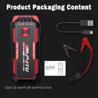 Portable Car Jump Starter, 2500A Peak Battery Jumper Starter Portable, Jump Box for Car Battery, 12V Portable Jump Starter for 8.0L Gas & 7.0L Diesel Cars with USB Ports & LED Flashlight Product Details Brand: Jrapotu Product Dimensions: 3.7"D x 3.39"W x 7.6"H Item Weight: 417 Grams Amperage: 2500 Amps Peak Output Current: 2500 Amps Manufacturer: Dongguan power new energy technology Co.,LTD Vehicle Fitment Note: Compatible with a wide range of vehicles including cars, trucks, motorcycles, and snowmobiles Model: A02 Item Weight: 14.7 ounces Item model number: A02 Batteries: 1 Lithium Metal batteries required. (included) Exterior: Brushed Manufacturer Part Number: Dongguan power-A02 Brand: Jrapotu Product Dimensions: 3.7"D x 3.39"W x 7.6"H Item Weight: 417 Grams Amperage: 2500 Amps Peak Output Current: 2500 Amps Battery Cell CompositionVoltage: Lithium Ion12 Volts Vehicle Service TypeBattery Capacity: All of the above16800 Milliamp Hours 【POWERFUL JUMP STARTER】This car jumper starter portable peak current 2500A, in the case of your car battery broken, this battery jumper starter portable can quickly start the car battery in a few seconds. Full charge only 3.5 hours to start 30 times, suitable for all 12V trucks, motorcycles, snowmobiles, SUV (up to 8.0L gas & 7.0L diesel engine) 【PORTABLE POWER SUPPLY】This car starter jump box has 16800mAh large capacity, USB dual interface output 5V/2.4A, 5V/3A, 9V/2A and 12V/1.5A power supply, Type-C interface input 5V/3A power supply. Can be charged for smart phones and tablets, do not use 10 seconds will automatically shut down.You Can Charge the Jump Starter with the Type-C Cable We Sent 【SAFETY PROTECTION】The smart clip of this portable car jump starter has the functions of fire prevention technology, reverse polarity protection, high temperature protection, overload protection and so on. An alarm is raised when the positive and negative electrodes are incorrectly connected. The starting power supply works perfectly from -40°F to 140°F 【EQUIPPED WITH LED EMERGENCY LIGHTS AND OTHER FEATURES】 This portable battery jump starter for car Including stable white lights, stroboscopic white light, SOS. Can clearly let others know that you are in an emergency situation, you do not need to worry about no light in the dark. This portable jump starter for car dust and rain protection