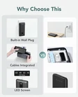 Portable Charger 10000mAh with Built-in Cables & Wall Plug, Power Bank for iPhone, Samsung, iPad, Travel Essential Description Battery Capacity 10000 Milliamp Hours Battery Cell Type Lithium Polymer Portable Yes Brand Name Charmast Item Dimensions L x W x Thickness 2.76"L x 5.95"W x 0.72"Th Brand Charmast Warranty Type 24-month support Model Number W1115 Compatible Devices iPhone 16/16 Plus/16 Pro/16Pro Max/15/15 Plus/15 Pro/15Pro Max/14/14 Plus/14 Pro/14 Pro Max/13/12/11/XR/XS/X/8/7/6, iPad,, for iPad, Samsung Galaxy S21, S20, S10, Note 20, Smartphone, Moto, Google Pixel, LG, and More Item Weight 8 Ounces Number of Ports 1 Connector Type Compatible with iPhone Samsung Android Connector Type Used on Cable Compatible with iPhone Samsung Android Color Black Additional Features travel essentials, Slim, Built In Cables, Built In Wall Plug, Fast Charging Special Feature travel essentials, Slim, Built In Cables, Built In Wall Plug, Fast Charging Power Source Corded Electric Voltage 5 Volts Seven in One: Built-in USB C & micro and other three cables integrated for all phones, additional 5V/3A USB C and USB A ports provide faster charging/recharging speed, LCD display shows the remaining juice visually, portable phone charger with wall plug allows you to travel not being tied by the bulky charger. Power Your Whole Day: 10,000mAh battery capacity provides 1.6 charges for your iPhone 13, 1 charge for your Samsung S22 ultra which can keep your phone always on. Slim Compact Design: The portable charger weighs about 8 ounces, 5.95" x 2.76" x 0.72" slim design fits comfortably in the palm or pocket. Wake up, Ready go: Pass-through charging technology allows you to charge your phone and power bank at the same time. Wake up with a fully charged phone and battery pack. (The max output will be only 1A under this function) What You Get: Portable charger 10000mAh*1, mesh pouch*1, user manual*1, our 24-month support, and 7-day/24-h friendly customer service. If you have any problems, please contact us and we will solve them within 24 hrs. Product Description Charmast portable charger with built in cables, it's allowed for airplane. Since it's 38.5Wh, It's very convenient to carry this portable phone charger for security checks at the airport. Traveling with only Charmast power bank with built in cables, stay away with the heavy phone charger and clutter cables. Charmast long lasting portable charger with wall plug, it's widely compatible with various devices. Widely compatible with iPhone 11, 11 pro, 12, 12 pro, iPad and iPad pro and also Samsung, google more cell phones, tablets etc. When recharge portable phone charger via wall plug, it can charge phones conveniently too. There is 2 ways for recharging portable charger by wall plug or usb c input. Nice portable charger for multiple devices, max charging 4 devices simultaneously. Very slim compact design, easily carry battery pack everywhere or put in most purses or bags. The cable will be easier to pull out through the horizontal direction. The metal prong will break if you usually insert or pull it out at an oblique angle. What's in the box? 1 x portable phone charger, 1x pouch, 1x manual, 1 x service card etc. How to troubleshooting the issues with this product 1) Make sure the product is fully charged with the built-in plug. 2) Press the button, when you make sure that the product is tightly connected to your device. 3) Deplete all the power of the product, and then charge it for more than 24 hours. Keep away from liquids, sources of ignition and high temperatures. Dispose of the battery in accordance with local environmental laws. Do not disassemble by yourself. Avoid dropping.