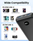 Portable Charger 27000mAh: portable charger made of high-density polymer battery, provides 6 charges for iPhone 15 Pro, 4 charges for Samsung Galaxy S23. Great for camping, hiking, traveling and other outdoors. 22.5W Fast Charging: portable charger supports 22.5W output power and QC4.0 fast charging, which could charge your iPhone to 62% in just 30 minutes. The external battery pack can be fully charged in 6 hours with a PD 20W charger(charger not included). 3 Output Ports: The power bank is equipped with 1 USB-C port and 2 USB-A ports, which can charge 3 devices at the same time. LED digital display clearly shows the remaining battery percentage. Widely Compatibility: Portable battery charger is widely compatible with various devices, including iPhone 15/15 Plus/15 Pro/15 Pro Max, Samsung, Google, Pixel, Android, iPad, tablets, cameras, and more. Safety Protection: Portable phone charger is equipped with built-in safety protection systems, including overcharge protection, short circuit protection, temperature control and more, ensuring comprehensive protection for you and your devices.