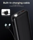 Portable charger adopts the latest Super Charger Protocol and Fast Charger Protocol. Support QC4.0+PD30W super fast charge, it only takes 30 minutes to charge your iPhone 13 from 20% to 80%, which is 3 times faster than most ordinary old power bank portable chargers on the market. Power bank has a detachable Type-C and IOS 2-in-1 output cable, which supports QC18W fast charging function when the cable is connected to the mobile power, and 22.5W charging output when the cable is detached, so that it can be used with other devices. Built-in Type-C and USB-A ports not only solves the problem of cluttered charging cables, but also charges multiple devices at the same time. So you can share with friends and charge together. Portable charger has a large capacity of 40000mAh. Using the new high-density polymer battery, it has a larger capacity under the same volume. The built-in LED digital display accurately shows the percentage of power remaining. Let you get rid of the anxiety about the battery level of your mobile device anytime, anywhere. Power bank uses the highest grade materials to make, from the fireproof case, the PCB motherboard with 10 safety protection designs can filter most dangers such as overcharging, over-discharging, short circuit or overheating, well-known brand super-grade lithium polymer safe battery Core, after rigorous 8-fold inspection. Just to let customers get a safe product. Power Bank portable charger comes with an ultra-bright flashlight with 4 modes (Super bright/Soft light/SOS/Strobe), press and hold the switch for 4 seconds to turn on the LED light (Super bright mode), click the switch button again to toggle through flashlight modes until it turns off the flashlight. Press and hold the switch for 4 seconds to turn the flashlight off in any mode. With the portable charger's four-mode flashlight mode plus it's own high-capacity battery, it can go on for a long time to dispel the darkness and be used for other emergencies.