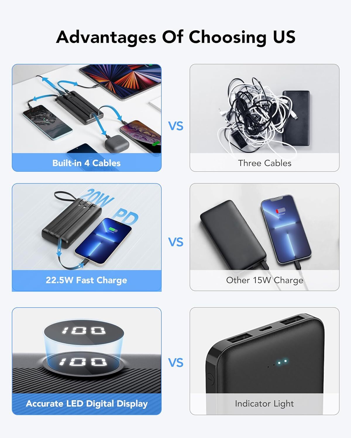 Portable Charger with Built in Cables 20000mAh USB C Power Bank 4 Output ...
