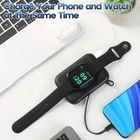 【Portable Charger】pocket-size and compact design with Arranged in the shape of a lanyard, allows you to carry it out with more ease and fits into your pocket or bag easily, combined with large-capacity power bank great for trips or traveling and With the magnetic charging module, you can charge your watch and phone anytime, anywhere, instead of a long-charging cable or an oversized base when outdoors or traveling. 【Magnetic Induction Charging and Convenient for Traveler】:Built-in latest magnetic adsorption module,Charge immediately after contact and Built-in 5000mAh battery gives your Apple Watch an extra battery life.Compatible with Apple Watch Series 9/ 8/7/6/SE/5/4/3/2/1/UItra/UItra 2/Nike+49 mm 45mm 44mm 42mm 41mm 40mm 38mm (Upgraded version works with all WatchOS, include latest 6.0.1). Just buy one of our wireless chargers and you can share it with family and friends. 【Universal Compatibility】Built-in Cable, Magnetic Adsorption Module and USB output port,Charging for 3 Devices at the same time,perfectly compatible with your iPhone / iPad / iPod.,iPhone 14 14pro 14 pro max 13 13 pro 13 pro max 12 11 10 X max XS XR 7 8 6/ Plus/ 5/ SE, iPad,Makes you power Apple Watch ,Airpods and Phone simultaneously for added convenience and far less hassle. 【Superb Technology】- Charge itself while simultaneously powering anything that’s plugged into it. Thus it allows you to charge the unit & have your devices charging at the same time . 【Smart LED Indicators】With Four White LED battery level indicators, let you know how much of the battery levels left(0--25%--50%--75%--100%) . The light will blink in increments when charging. 4 LED lights Solid On when fully charged.
