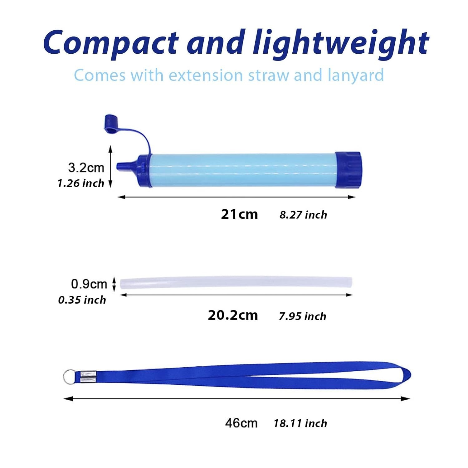 Stay prepared wherever you go with this portable water filter straw , designed for outdoor use such as hiking, camping, traveling, and backpacking. It helps you access cleaner water quickly and easily, no matter where your adventure takes you. Lightweight & Compact: Weighing only 5.64 oz (160g), this ultralight filter is easy to carry in a backpack or hang around your neck with the included strap. It’s built to go wherever you go — just pack it and head out. High-Efficiency Filtration: Capable of filtering up to 1500 liters (396 gallons), this outdoor water purifier removes particles down to 0.01 microns, providing dependable hydration while maintaining a smooth flow rate of 550ml/min. Easy to Use, No Extra Tools Needed: Fill the included pouch from any freshwater source. Use the 7-inch extension tube to comfortably drink without needing to bend down. A must-have tool for any emergency kit, outdoor activity, or off-grid situation.
