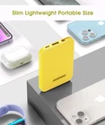 Small Pocket Size Power Bank: 4500mAh mini clutch phone charger is only 0.26lb(120g) 3.98*2.7*0.55 inch.Compact external battery phone charger is portable to hold in hand, you can easily put the lightweight portable charger small power bank in your pocket or handbag. With this 4500 mAh power bank, no worry about your cell phone running out of battery. Built in Cable Power Bank: Ultra slim portable mobile charger with attached cord, which is designed specially for Phone users. It's widely used for charging all cell phone models, Compatible with iPhone 14,13,12,11 Pro,XS,XR,X,Pro Max,SE,8,7,6,and more.Emergency phone charger with small credit card size but strong power supply. USB C Input & Output Fast Charging: The small rechargeable battery charger equipped with upgraded USB C port, it supports fast charging the new upcoming mobile phones, and also fast recharging this 5v power bank just only 3 hours. USB C IN/OUT port and USB output make it possible charging 3 smartphones at the same time. 4500mAh Strong Power for Cell Phones: Mini power bank slim & mini size with 4500mah battery capacity, it is enough for one charge when your phone run out of battery. This backup battery supports 3 devices charging at once, also you have 3 options(built-in cable, USB-C output, USB A output) to charge your devices. Best Present for Phone Uses: We focus on every details to create better chargers to our customers. Unique and simple design is popular for Phone users, it's an ideal present for friends, families. It will be a best choice to carry this mini cute portable charger on your vocation trip, business, airplane, outdoor camping, hiking, running. Package Includes: The package is including 4500mAh x 1 portable backup charger, USB charging cable x 1 and user manual x 1.