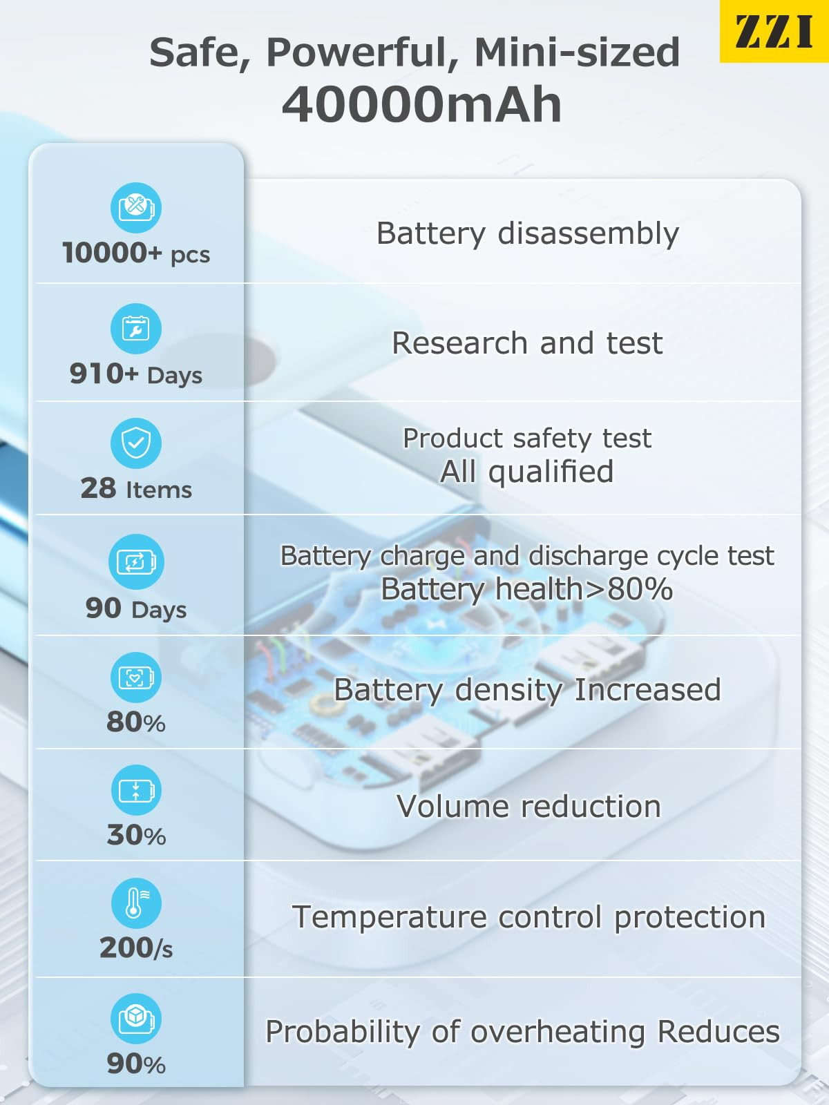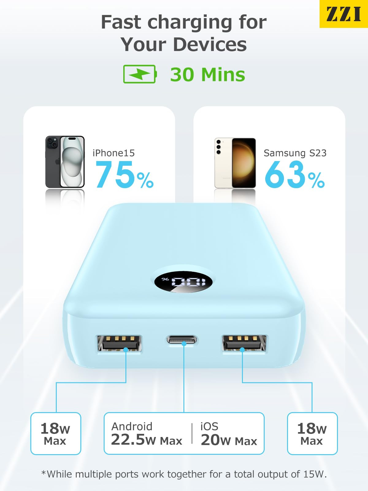 【Easier to Charge】 This ZZI portable charger equipped with 2 USB-A ports and 1 USB-C port for simultaneous charging of three devices. Charges iPhone 15 up to 75% and Samsung S23 up to 63% in just 30 minutes, ensuring quick and efficient power replenishment. (*Power bank total output of 15W when using multiple ports simultaneously.)The LED display shows current battery charge, input, and output status, eliminating guesswork about charging needs. 【Power in Your Pocket】 This portable charger is lighter and smaller than most power banks at only 11.01oz (lighter than two iPhone 15s), fitting easily in your bag or pocket for charging on the go. Its 40000mAh battery pack keeps your device fully charged all day.(IMPORTANT: 40000MAH PORTABLE CHARGER ARE NOT ALLOWED ON AIRPLANE) 【Mini-sized】Collaborating with leading battery energy labs, we analyzed over 10,000 cell types over 2.5 years to develop a new high-energy, ultra-compact battery cell. Our product passed all 28 safety tests with flying colors, maintaining over 80% battery health after 3 months of charge-discharge cycles. With an 80% increase in density, our battery bank is now 30% smaller than others with the same capacity. 【Safe, Powerful】features an intelligent AI chip for automatic temperature control, executing 200 protections per second, reducing overheating risks by 90% for a safer user experience. Built-in smart circuitry ensures protection against overheating, over-voltage, overload, short-circuit, and overcharging. 【Handy Stand】ZZI surveyed 2,000 individuals and discovered that 30% prefer cases with brackets for easier screen viewing during work. A significant 70% always carry a power bank when going out. From this data, we concluded that a power bank with a bracket feature is essential. After five months of research and development, we introduced the N7 portable power bank with a telescopic bracket, designed to free your hands when needed. Following two months of user testing by nearly 1,000 participants, the N7 received unanimous positive feedback. 【Universal Compatibility】 Safely supports PD3.0/QC2.0/QC3.0/DCP/FCP protocols, tailored for various electronic devices. Compatible with iPhone 15/15 Plus/15 Pro/15 Pro Max/14/13/12/11, Samsung Galaxy, Google Pixel, and more Android phones and devices. 【What You Get】 1 * 40000mAh Portable Charger, 1 * Type A-C Cable, 1 * User Manual. Enjoy a 365-day replacement, 30-day full , and 24/7 online for any inquiries or issues.