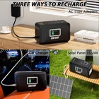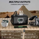 High Capacity & power bank:The portable charger is equipped with an 88Wh (24000mAh, 3.7V) rechargeable battery pack and is equipped with a 2x 110V/120W (peak 150W) AC outlet. It is a great solution for AC power, providing you with the stable and safe power you expect. This is a great choice for mobile offices, hurricane emergency supplies, RV camping accessories, road trip essentials 8 Output Ports:Portable power bank has 8 Outputs ports, 2 USB 3.0 18W max QC ports, 1 USB 5V 2.4A ports, 1 USB C port 18W max, 2 DC ports 12V 10A max, 2 pole and 3 pole output sockets with 120W running (150W peak). Powers mobile phones, iPads, laptops, tablets, cameras, radios, USB powered night lights, mini fans under 120W Compact and lightweight design:This portable power station is slim in size (6.6 * 4 * 3 inches) and light in weight (2.3 pounds), making it very convenient in a variety of situations. This portable charger is an ideal necessity for outdoor camping, road trips, and home power outages. Whether you are facing an emergency at home or camping outdoors, this power bank can help. Three Chargeable Modes:The portable charger power bank can be charged through an AC adapter, a car charger, or in direct sunlight through a 15-24 volt solar panel (not included), so you can charge the battery pack anywhere you want without worrying about low power consumption and reduced battery capacity. Smart Displays and LED Lights:Mutifuction LCD display would show you the remaining energies/charge/discharge/AC output/DC output status. Ultra-bright LCD screen allows you to know the status of the portable laptop charger even when camping without a light source. 2) This portable charger power bank comes equipped with a 3-level brightness and SOS mode, Simply press the LED flashlight switch to adjust the brightness and activate the SOS mode, Whether you're camping in the great outdoors or dealing with a power outage, this portable charger will always light your way