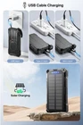Solar-Charger-Power-Bank , 49800mAh Large Battery Capacity, Qc3.0 Fast Charger with LED Flashlight, lP65 WaterproofPower Bank Perfect for Camping, Outdoor Activities. More Features ; Builtin 49800mAh large capacihbattery. Suitable for all mobile phones, smart watches, tablets, and other electronic devices. Please fuly charge it via USB cable beforetraveling or hiking. v Flashlght has 3 modes that can be switched arbitrarily - Steady Mode / SOS Mode / Strobe Mode When facing different situations outdoors, you can tur on the corresponding ight mode to solve our outdoor lighting, help, and safety issues The carabiner design is easy to carry and the solar charger power bank can be easily hung on the backpack for outdoor activities. Our solar power bank suppor USB and solar charging. Note. Solar charging is affected by weather and many factors. using an AC outlet tocharge can make the power bank full faster. 【SUPER LARGE CAPACITY】- Our solar phone charger boasts a 49800mAh high-density lithium polymer battery. It has a long lifespan, supporting thousands of recharge cycles. 【FAST CHARGING】- We upgraded the output port of the classic to USB-A 22.5W fast charging, and the charging speed has increased by 50% compared with the original. Compatible with 99% of devices in the market, such as iPhones, Samsung tablets, etc. 【POWER 5 DEVICES SIMULTANEOUSLY】Equipped with 3 ports (USB-A output, Type-C input, Micro-USB input) providing 22.5W(Max) high-speed charging, this solar phone charger simultaneously charges up to 5 devices. With 4 charging cables and wireless charging, you can charge up to five devices at time. 【15W WIRELESS CHARGING】Enjoy advanced wireless charging with this power bank, compatible with all wireless-enabled devices. Simply place your device in the designated area for instant, cable-free charging. 【BUILT-IN FLASHLIGHT】- The portable solar charger comes with an LED flashlight featuring 3 modes (Steady, SOS, Strobe), perfect for emergencies, power outages, and camping. 【OUTDOOR DESIGN】Made from high-strength ABS and PC materials, this power bank is IP65 waterproof, heat-resistant, shockproof, and dustproof. The ultra-dense, fine-grained, non-slip design provides a comfortable grip for a better user experience. 【USB & SOLAR CHARGING】- Solar power bank can be charged by an outlet or solar panel. Please note that the solar charging speed depends on the intensity of light and its influence on the area. It is recommended to fully charge with USB before traveling, with solar charging as an alternative. 【INTELLIGENCE SAFETY PROTECTION SYSTEM】Solar battery bank has built-in multiple intelligent security protection systems, to keep your device away from overcharge, over-current, over-voltage, overload short circuits, etc.