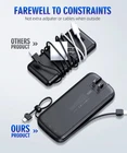 Portable charger with built in cable:It is no longer necessary to take extra charging cables when going out. Portable charger built-in AC Wall plug allows you to recharge itself directly from the wall outlet without carrying adapter or any extra cables. Fast Charger: Portable charger power bank Type-C port supports PD30W, USB-A port and Type-C Cable support SCP22.5W fast charging. Keeping your electronic devices fully charged in short time, bringing you a pleasant experience of fast charging. Wide Compatibility: Portable charger is designed with 4 outputs: Type-C cable, iPhone cable, USB-A and Type-C output ports. USB-A port works with most electronic devices, Type-C Port compatible with iPhone 15 but type-c cable cannot. Lightweight & Compact Design: Portable charger power bank with dimensions of 6.1x 2.7 x 0.7 inches and a lightweight of 7 ounces. Putting portable charger comfortably in your palm or pocket makes it extremely convenient to go outdoor activities or trips. Superior Safety: Battery pack adopts high-density A-grade lithium polymer battery cells with a large capacity of 15000mAh, and a comprehensive multi-protection safety system with Short circuit protection, Overcharge protection, over heat protection that will stop working when the environment’s temperature exceed the normal condition. We always put the safety of customers in the first place, and customers can use our portable charger with confidence.