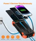 [Five Outputs & Three Inputs ]The portable charger has built-in 3 output cables (iOS & USB-C*2), and a 24cm extended USB-A input cable. Providing your cable-free time. It also has various ports (USB-C Output/Input &USB Output & iOS Input). Powering 5 devices at the same time, compatible for all iOS and Android users. [42800mAh Large Capacity] The power bank has a 42800mAh premium battery, providing extra-long charge time with one full charge, supporting a week of power or more. Along with its multiple outputs, it keeps all your device batteries green easily. Sharing it with your families and friends is also a great choice. [Exclusive Design]The solar power bank has two exclusive and useful tools, a multiple-purpose LED red light pointer and a physical thermometer. You can use the laser pointer to point out something, send a signal, play with pets, etc. The thermometer can detect indoor and outdoor temperatures at any time without power consumption. [Three Modes Flashlights] This solar portable charger has dual bright LED flashlights with 3 modes (SOS/Strobe/Steady) for power outages and other emergencies. A useful tool for daily life and in case of emergencies, a must-have for outdoor activities such as camping. Powering your devices, lighting up the dark and showing the temperature around, etc. [Sturdy&Durable for Outdoors] The solar battery pack is made of strong ABS material, with drop-resistant thick silicone on each corner. The charging port is also protected by a silicone cover. Drop-proof/dust-proof/water-proof design withstands the harsh environment. Do not miss this power bank if you are an outdoor enthusiast. [Thanks for choosing us] Every product is certified safe and provided with lifetime warranty. We also provide professional pre-sales and after-sales service for you. Any questions, please feel free to contact us. We promise you a satisfactory solution within 24 hours.