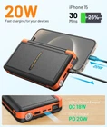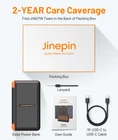 Power Bank Solar Charger 46800mAh Built in 4 Cables 3 Foldable Solar Panels, PD20W Fast Charging Portable Charger, LED Display Powerbank USB C in/Output, External Battery Pack with SOS Camping Light Product Details Connector Type: USB Type C, USB Type A Brand: Jinepin Battery Capacity: 46800 Milliamp Hours Color: Orange Special Feature: Flashlight (SOS, Strobe, Normal), Digital Display, 30s Auto Shut-Off, PD 20W Fast Charging, 4 Built-in Cables See more Product Dimensions: 6.89 x 3.94 x 1.18 inches Item Weight: 1.25 pounds Item model number: PN-W21S Batteries: 2 Lithium Polymer batteries required. (included) Special features: Flashlight (SOS, Strobe, Normal), Digital Display, 30s Auto Shut-Off, PD 20W Fast Charging, 4 Built-in Cables Other display features: Wireless Color: Orange Manufacturer: Shenzhen Pannizhe Technology Co., Ltd. Country of Origin: China Date First Available: March 7, 2024 Innovative Solar Panels for Recharging Power Bank Press the "OPEN" button on the side to open the 3 solar panels with one click. Those premium panels can produce 960mA Max (320mA*3, under 25000Lux sunlight) current to instantly recharge this solar charger, 6X higher solar charging efficiency than the normal single panel solar phone charger. Foldable solar panels are easy to hold on a backpack, JINEPIN portable charger is a perfect choice for outdoor enthusiasts. What if it's cloudy? For sunlight intensity<25,000Lux, we recommend recharging a portable battery charger with the built-in QC 18W USB-A cable or through the Type-c/ Micro USB input port that supports QC 18W. After testing, the JINEPIN solar charging bank can be fully charged within 5 hours using the USB C input port. Classic Fast Charging Cable for multiple devices Built-in 3 (IOS/ Micro /Type-c) output cables, plug-and-play. The Type-C cable supports fast charging up to 18W. If you need to charge multiple devices, such as your tablets, smartphones, earphones, etc., there is also a USB-A output port on top of the power bank that supports PD 18W, as well as a Type-C output port that supports PD 20W. You can charge up to 5 devices simultaneously. Enormous 46800mAh Capacity Portable Charger Jinepin solar power bank has a massive 46,800mAh premium Li-polymer battery, enough to power most cell phones for about a week. The built-in LED digital display accurately shows the percentage of power remaining, no more hassle of guessing the remaining battery and you can recharge the battery pack in time conveniently. Super Bright Camping Light & SOS Flashlight Press and hold the switch for 3 seconds to turn on/ off the flashlight. Short press to switch to 3 different camping light modes including Normal electric torch mode/ SOS mode/ Strobe mode, coping with different outdoor use environments. Light up the darkness and secure your night while in an emergency or the wild. Thanks for choosing JINEPIN Youll get 1 x solar charger 46800mAh, 1 x c-to-c charging cable, 1 x lanyard, and 1 x user manual, all contained in a nice gift box. Every JINEPIN product is certified safe and provided with a 2-year warranty. We also provide professional pre-sales and after-sales service for you. Any questions, please dont hesitate to contact us. We promise you a satisfactory solution within 24 hours.