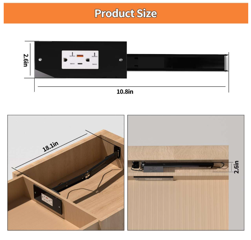 INNOVATIVE DESIGN: Features a unique drawer-style outlet that can be pushed back into the wall when not in use, maintaining a sleek appearance. SPACE-SAVING: Perfect solution for tight spaces, allowing you to place furniture closer to the wall without blocking access to power. FUNCTIONALITY: Standard electrical outlet provides reliable power access while the sliding mechanism ensures smooth operation. INSTALLATION: Compatible with standard electrical boxes for straightforward replacement of traditional outlets. SAFETY FEATURES: Built-in protective housing keeps connections secure while the drawer mechanism provides additional protection when not in use.