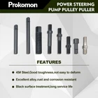 Power Steering Tool: For removal and installation of pressurized alternators; power steering pumps and other pulleys Function: This tool kit for home and professional power steering repair pulls and installs any pump pulley with a 1-1/8; 1-1/4; 1-5/16 or 1-3/8 inch hub diameter Compatibility: Fits for late GM; for Ford and Chrysler engines; Includes special adapters for GM 3.2 Quad 4 engines and Modular engines Sturdy: The pulley puller and installer tools are constructed from structural-AISI 1045 medium carbon steel for the necessary strength ; each piece is also heat treated and blackened for dependability and corrosion resistance Easy to Use: This power steering pulley removal tool is intuitive and In the following product description; there are detailed steps for product disassembly and installation