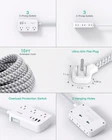 【Ultra Thin Flat Plug】- with only 0.35 inch ultra slim design, the wall flat plug is thinner than traditional plugs, which can close to the wall easily, fits tight spaces behind sofa, nightstand, bookshelf and headboard. 【10 in 1 Power Strip with USB】- The 3-side extension cord features 6AC widely spaced outlets (1875W/125V/13A), and 2 USB-A 2 USB-C ports (5V/3.1A/15W in total), could charge 10 devices simultaneously. It would charge your cellphone, laptop, tablet, cameras etc, suitable for the home, office, and dorm room. 【Cruise Accessories Must Haves】- The small cruise power strip with NO surge protection, it's absolutely a must have Home and Cruise Ship accessories as cruise lines require that power strips DO NOT have surge protection. Compact and lightweight, easy to carry and best for travel. 【Overload Protection】- The flat extension cord with built-in multiple security module safeguards your electronic devices from overload and over-current/over-charge/short circuit/over-heated. ETL and FCC certificated. 【10Ft Power Cord & Mountable Design】- The braided fabric makes it tangle-free and more flexible, while also adds a decorative touch to any room space. This mount power strip can be fixed on the wall or desk by 2 keyhole slots on the back.