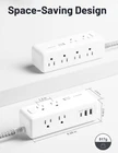✅【Multiple Plug Outlet with USB Ports】11 in 1 surge protector power strip with 8 AC outlets, 2 USB-A ports, and 1 USB-C port ( total USB output of 15W ). Built-in smart technology detects charging devices and automatically delivers optimal charging speed. The power strip features 2 mounting holes and 2 anti-slip pads on its back, providing secure wall mounting or stable desk placement. helping you save space and keep your power cords organized. ✅【3 Side Space Saving Design & Widely Space Outlets】The outlets have wide spacing (1.3 inches) and a three-sided design, allowing for large plugs and adapters without blocking each other. The power strip is compact, dimensions of 6.29 x 2.04 x 2.04 in and weighs 517 g. ✅【Overload Surge Protection 】The power strip have 700 Joules surge protection to effectively shield your devices from lightning, power surges, and spikes. The reliable 1875W/15A overload protection switch automatically cuts off power in the event of an overload. Additionally, the power strip is equipped with a 1380℉ flame-retardant shell. This ensures the safety of your devices, as well as your home, office, and dorm room. ✅【Wall Mountable 6Ft Braided Extension Cord with Flat Plug】The flat plug is designed for effortless concealment under or behind furniture, while the 45-degree angle ensures neighboring outlets remain easily accessible. Additionally, the power strip is equipped with a 6-foot braided cable, offering ample length for flexible positioning. ✅【What You Get】Package includes 6FT surge protection power strip, 1-year product warranty, and 30-day free return. If you have any questions about this power strip, please feel free to contact us, and we will provide you with the best solution within 24 hours. Your satisfaction is our top priority.