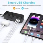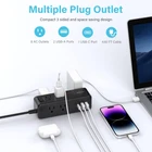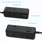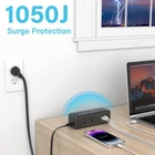 AJHE27-H 【11-IN-1 Power Strip with USB C Fast Charge】- 8 wide AC outlets power strips, 2 USB-A ports, and 1 USB C port. With the 0.39-inch ultra-thin flat plug design and 0.13-inch ultra-flat extension cable, you can easily place this flat plug power strip in tight spaces and hide it behind your sofa/fridge/cabinet. The compact design power strip saves more space for your home, office, and college dorm room. 【3-Side Space-Saving Power Strip】Unique 3-sided design of the Desktop Power Strip, fully expands the use of space. The sizeable 1.08-inch spacing of the USB power strip allows 8 large plugs to be used simultaneously and without blocking each other, which helps you save space. The compact size takes up less space on your desk or luggage, essential for travel, home, office, and college dorm. 【Wall Mountable Power Strip】The two mounting holes on the back of the socket allow this power strip to be secured vertically or horizontally where you need it. The flat plug power strip is much thinner than traditional plugs, which can close to the wall easily, and the right angle flat plug design prevents bottom plug blocking. 【1050J Surge Protector Power Strip】Our surge protector with USB ports has overload protection, short-circuit protection, over-current protection, and so on. Fire-resistant ABS shell (1382℉), 13A circuit breaker (1625W Max. 13A, 125V Max), and 1050J surge protector outlet protect your expensive devices. The individually controlled power switch makes turning the power strip surge protector on or off easy. (The "Surge Protected” indicator light on to show your devices are protected). 【USB C Charging Station】The flat plug power strip has 1 USB-C port (5V/3.0A) and 2 USB-A ports (5V/2.4A). The USB charging station ports automatically detect charging devices and deliver optimal charging speed. 3 USB Ports total is 5V/ 3.1A. Ideal for cell phones, tablets, earphones, etc. ( Provide with 2 year )