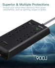 Power Strip Surge Protector, 6 Outlets and 3 USB Ports 5Ft Long Extension Cord, Flat Plug Overload Surge Protection Outlet Strip, Wall Mount for Home, Office and More, ETL Listed Black Description and features 【9 IN 1 Power Strip】6 AC outlets and 3 USB high-speed charging ports enable you to power up 9 devices simultaneously. Each USB port can detect and deliver an ideal input current of up to 5V/2.4A (the actual current is decided by the demand for the devices) 【Overload Protection】Intelligent circuitry with built-in power sensing detects the external load. The rocker switch can automatically shutoff to keeps your device safe. This flat power strip is also protected against over-voltage, over-current, overload, short-circuiting 【Surge Protector Outlet】- 3 complementary Surge Protection Circuits, TVS(transient voltage suppressor) MOV(metal oxide varistor) GDT(gas discharge tube), with the minimum energy-absorbing capacity of 900 Joules, much more quickly and reliably than the traditional MOV surge protector circuit. ("SURGE PROTECTED" indicator light on to show your devices are protected) 【Right Angled Flat Plug & 5ft Upgraded Extension Cord】Low-profile flat plug fits easily in tight spaces. Angled flat plug design prevents bottom plug blocking. 5 Ft upgraded braided extension cord makes it tangle-Free and more flexible, elegant, durable and hard-wearing 【Convenient and Practical】2 keyhole slots and screw fixation design enable it to be mounted on a wall or fixed it on the desk. Wide space between each outlet, which avoid plugs blocking Return Policy ⦿ All our products come with a 30-Day Return Policy. If you would like to return your item and you are within 30 days of the purchase, and it is still in its original condition, you can return the item by contacting us through eBay messaging. ⦿ If you are not 100% satisfied, please let us know the Detailed Problem,We will give you a 100% satisfactory solution ⦿ If you received an incorrect, damaged, defective, or item not as described, contact us for a partial/full refund or replacement on our cost. ⦿ Free Shipping and Free Return 30-Days Money Back Guarantee. ☎ For all returned products, buyers MUST contact us for the returning address. Shipping ⦿ We do not ship to a different address. we will ship to the address you provide on the ebay only. Please check your address before purchase. ⦿ It should take 2-4 business days for the product to reach your destination. ⦿ If the product doesn't reach your destination within the time limit, please give it an additional 1-2 business days in case of postal delays and/or possible technical issues. ⦿ We use a selection of shipping services such as UPS, FedEx, USPS etc. ⦿ We ship only to the 48 contiguous states of America. We do not ship to Hawaii, Alaska, US Protectorates, APO/FPO addresses. Local pickups are not offered. ☎ If it takes any longer than that, please do not hesitate to contact us to resolve the issues. Contact us ☎ Please contact us via eBay message. And your message will be replied within 1 business days. For any queries, please feel free to contact us, we will get back to you as quickly as possible. Customer 100% satisfaction is our first priority and goal. We are always working hard for maintain high standards of excellence and resolve your problem in best way. So your POSITIVE FEEDBACK is very important. If you have any problem of the item, please feel free to let us know before leaving your feedback. We will try our best to solve your problem. About us We are here to give you quality products, competitive pricing and amazing service in order to make sure you get the best deal online, Thank you for your business and the opportunity to serve you.