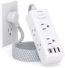 【9-IN-1 Desktop Power Strip with USB C Fast Charge】— With 6 AC outlets, 2 USB ports and 1 USB C power strip, power up 9 devices simultaneously. USB C charging port features 3A Max, USB A charging port features 2.4A Max, With smart charging technology, it can auto-detect your connected devices and can reach faster-charging efficiency, which would charge your devices WITHOUT a variety of converters. 【3 Side Space Saving Design & Widely Space Outlets】— 3-side design and each AC outlets with 1.6 inches space in between, larger than standard 1.5-inch socket, fit big adapters without blocking each other. The compact size (5.0*1.9*1.8 IN) takes up less space on your desk or luggege, essential for the travel, home, office, and college dorm. 【Wall Mountable Extension Cord with Flat Plug】— The low-profile flat plug fits easily in tight spaces; and the right angle flat plug design prevents bottom plug blocking; the 5ft upgraded power cord is very thick and has better current carrying capacity (13A); the two mounting holes on back allows this power strip to be securely installed in various applications. 【Overload Surge Protection 】 — Features 900 Joules surge protector outlets. Lighted on/off switch with integrated circuit breaker for overload protection of all outlets, It will automatically cut power to protect connected devices when voltage surge is overwhelming. (The "Surge Protected” indicator light on to show your devices are protected). 【Multi Safety Protection】— This travel power strip certified by ROHs, FC, ETL, protected against over-voltage, over-current, over-charge, short-circuiting, over-heating. Fire-resistance PC shell with flame retardant at 1382℉ makes it more durable and longer lifetime. Product Description 9-IN-1 USB C Power Strip for Home, Office, Travel - 6 AC outlets and 3 USB charging ports ( 1 USB C ) provide power and charging for up to 9 devices from a single wall charging unit. - 3 Side Compact Design , take less space and charging more devices without blocking. - 5 Ft heavy duty extension cord with low-profile flat plug, great for stashing under or behind furniture. - 2 keyholes on the back, easily mount this flat extension cord onto the wall. Why choose us? In order to build a brand that is worthy of everyone's trust, make it famous for its excellent products. We carefully investigate the needs of consumers and strive to make our product better match customers' needs. We collect many customer needs and user feedbacks to improve our multiple outlet plug extender.You can find many user-friendly designs on our products. Wall Mountable Power Strip 6 Outlets Power Strip with 3 USB Charging Ports This power strip can support 9 devices simultaneously. 3 side space-saving design and compact size, ideal for small and tight place, great for home, office and travel use. It also with 2 holes on back, easy to mount it everywhere. Most devices and home appliances can be connected. Compatible with 100~240V worldwide voltage, meaning you could use it while traveling overseas together with a travel plug. However, it's NOT a voltage converter and your device needs to support 100-240V as well. 3 Side Space-saving & 1.6 Inch Widely AC Outlets 6 AC Outlet + 2 USB-A + 1 USB-C Ports 5 Ft Braided Upgrated Power Cord Multi Safety Certificate & 900J Surge Protection 45° Right Angle Low Profile Flat Plug Specification Power Rating 125V 60HZ 15A Maximum Power 1875W MAX Surge Protector Rating 900 Joules Length of Cable 5 Ft/1.5m USB C OUTPUT 5V/3A MAX USB A OUTPUT 5V/2.4A MAX USB OUTPUT 5V/3.1A TOTAL Safety Protection ETL List, FCC, RoHs 3 Side Non-blocking Design The unique 3 sided space saving design and 6 widely spaced ac outlets are separated enough to fit big plugs without blocking each other, easily plug in your PC, TV, more. USB-C High Speed Charging USB Total Output 3.1A, Built-in SMART IC with Super change technology intelligently detects your device to deliver its fastest possible charge speed up to 2.4A. USB-C port can up to 5V/3A. The USB-A charging is NOT Fast Charge QC 3.0, It can meet most USB devices charging needs. Overload Protection Features 900-Joule surge protection, overload protection, and much more to keep you and your devices safe. Multiple safety protection can prevent your electric devices from over-current/over-charge/short circuit/over-heated. Fireproof Material Fire-resistance PC shell with flame retardance at 1382℉ makes it more durable and longer lifetime. Attach Anywhere Designed with a right angled slimmer flat plug than other power strips, perfect for hard-to-reach outlets tucked away behind your bed or sofa. Upgraded Braided Extension Cord 15A heavy duty cord 5 ft to provide up to 1875W, compatible with higher power of most devices. The braided design makes it tangle-free and more flexible, elegant, durable and hard-wearing.
